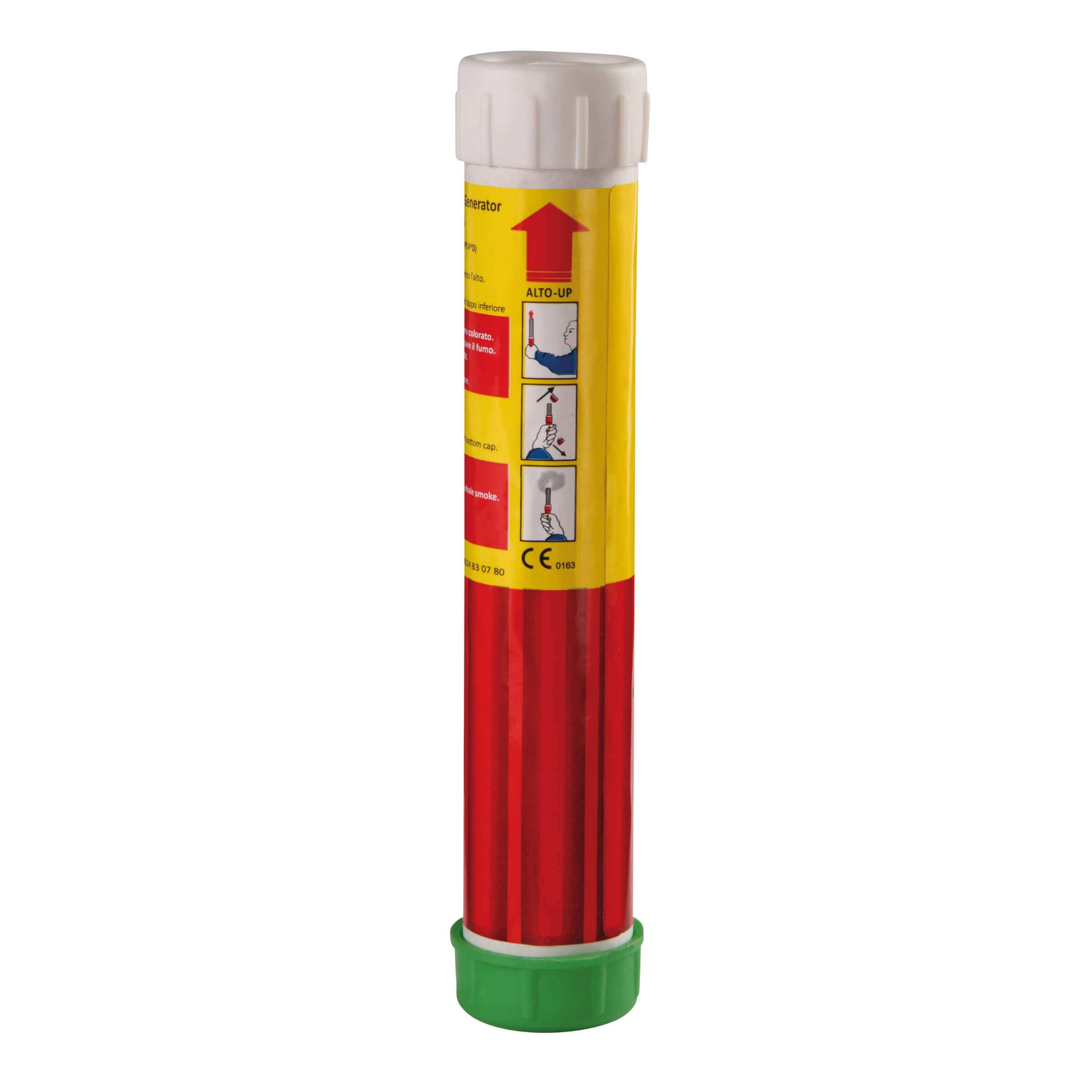 Il fumogeno a mano bianco 0297CC è progettato per offrire un’emissione densa e ben visibile di fumo bianco, ideale per effetti scenografici, segnalazioni, simulazioni tecniche o uso sportivo. Unisce performance affidabili a un design compatto e pratico.• Fumo bianco intenso e denso: Il colore neutro è perfetto per segnalazioni visive, esercitazioni e impieghi professionali dove è richiesta un’emissione altamente visibile e priva di colori accesi.• Attivazione rapida e intuitiva: Le istruzioni chiare presenti sull’involucro guidano l’utente in ogni fase. Basta rimuovere il tappo inferiore, seguire la sequenza e il fumogeno è pronto all’uso.• Formato compatto: La struttura cilindrica contiene 26 grammi di massa attiva, offrendo un buon compromesso tra durata dell’emissione e praticità di trasporto.• Conformità normativa: Rientra nella categoria P1 secondo la classificazione europea, quindi può essere utilizzato da maggiorenni senza patentino specifico.• Uso esterno: Progettato per funzionare all’aperto in condizioni controllate, è ideale per feste, eventi, gare e simulazioni di addestramento.Il fumogeno a mano bianco 0297CC è un dispositivo affidabile e versatile, perfetto per chi cerca un effetto visivo sobrio ma altamente performante in ambienti outdoor.Avvertenze: Prodotto per uso esterno. Non inalare il fumo. Tenere lontano da fonti di calore e leggere attentamente le istruzioni prima dell’uso.