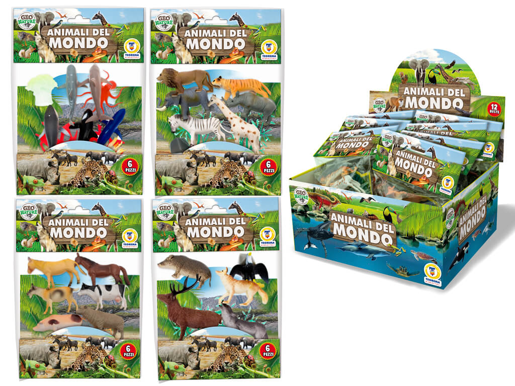 Le buste Geo Nature con 6 animali del mondo rigidi sono un fantastico set di giocattoli educativo che permette ai bambini di esplorare la fauna terrestre e marina. Ogni busta contiene una selezione di animali realistici, offrendo un'esperienza di gioco coinvolgente e istruttiva.• Set di 6 Animali Realistici: Ogni busta contiene 6 animali accuratamente dettagliati, rappresentando varie specie provenienti da tutto il mondo. Questa selezione include animali della giungla, del mare, della fattoria e dei boschi, permettendo ai bambini di scoprire la diversità della fauna mondiale.• Materiali di Alta Qualità: Gli animali sono realizzati in plastica resistente e rigida, garantendo durabilità e sicurezza durante il gioco. I materiali utilizzati sono conformi agli standard di sicurezza, assicurando un gioco sicuro per i più piccoli.• Dettagli Realistici: Ogni animale è progettato con cura per riflettere le caratteristiche uniche delle specie rappresentate. I dettagli realistici aiutano i bambini a riconoscere e imparare di più sugli animali, stimolando la curiosità e l’interesse per la natura.• Gioco Educativo: Le buste Geo Nature offrono un'opportunità educativa unica, permettendo ai bambini di imparare a identificare diverse specie animali e a conoscere i loro habitat naturali. Questo set è ideale per l’apprendimento attraverso il gioco, promuovendo lo sviluppo delle conoscenze scientifiche e naturali.• Versatile e Portatile: Le buste sono facili da trasportare e possono essere portate ovunque, offrendo intrattenimento educativo a casa, a scuola o durante i viaggi. La confezione compatta rende anche facile conservare e organizzare i giocattoli.• Perfetto per Regali: Questo set è un'ottima idea regalo per compleanni, feste e altre occasioni speciali. Le buste colorate e i giocattoli dettagliati catturano l'attenzione dei bambini, garantendo ore di divertimento e apprendimento.Le buste Geo Nature con 6 animali del mondo rigidi sono un'aggiunta fantastica a qualsiasi collezione di giocattoli educativi. Con la loro combinazione di qualità, realismo e valore educativo, questi set offrono ai bambini un modo divertente e interattivo per esplorare il mondo animale.