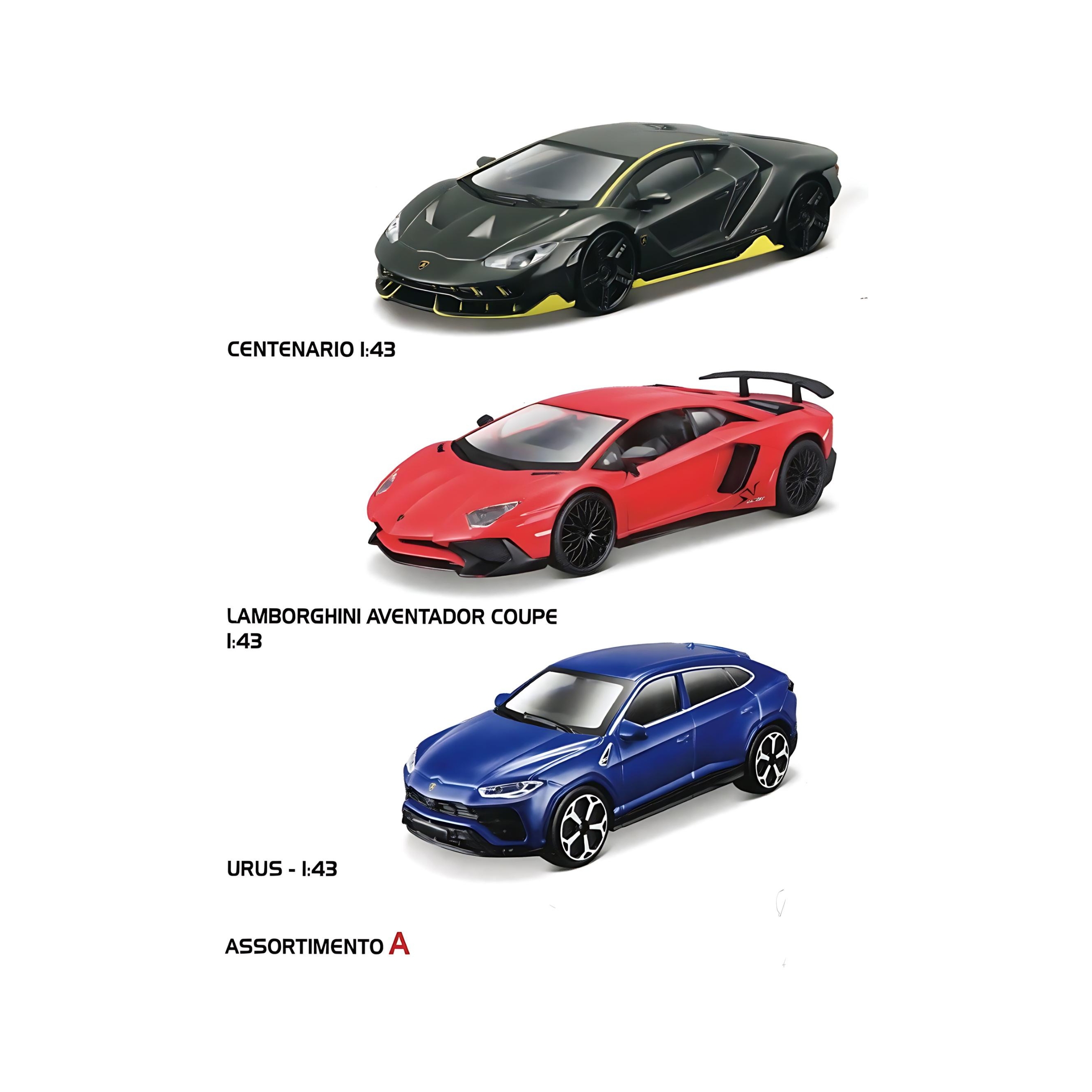 Il Gift Pack Lamborghini 3 Modellini Auto Die Cast 1:43, perfetto per gli appassionati di automobili e collezionisti. Ogni modello è realizzato con grande attenzione ai dettagli, offrendo un’esperienza di alta qualità.• Dettagli Realistici: Ogni modellino Lamborghini riproduce fedelmente le caratteristiche distintive delle supercar originali. Dai fanali anteriori al disegno dei cerchi, i dettagli interni ed esterni sono curati con precisione per riflettere l’autenticità dei veicoli.• Materiali di Alta Qualità: I modelli sono realizzati in metallo pressofuso con parti in plastica, garantendo durabilità e una finitura superiore. La robustezza dei materiali utilizzati assicura che questi modellini possano resistere all’usura del tempo.• Scala: La scala 1:43 offre un ottimo equilibrio tra dimensioni e dettagli, rendendo questi modelli perfetti sia per l'esposizione che per il gioco. Le dimensioni compatte permettono di aggiungere facilmente questi pezzi a qualsiasi collezione.• Design Accattivante: Il set include tre modelli Lamborghini in diverse colorazioni e varianti, tra cui la Centenario, l'Huracán Coupé e l'Urus. Ogni modello cattura l’occhio con la sua estetica sportiva e sofisticata.• Confezione Regalo Elegante: I modellini sono presentati in una confezione regalo elegante, ideale per fare un regalo a un appassionato di automobili o per aggiungere un tocco di classe alla propria collezione.• Ampia Selezione: Questo gift pack include 2 differenti assortimenti:Assortimento A:Lamborghini CentenarioLamborghini Aventador CoupeLamborghini UrusAssortimento B:Lamborghini RevueltoLamborghini Aventador RoadsterLamborghini Countach• Marchio Bburago: Bburago è sinonimo di qualità e precisione nella produzione di modelli die cast. Con questo set regalo, Bburago continua a offrire prodotti che soddisfano le aspettative degli appassionati di automobili.Il Gift Pack Lamborghini 3 Modellini Auto Die Cast 1:43 è la scelta perfetta per chi desidera aggiungere un pezzo di storia automobilistica alla propria collezione. Con dettagli accurati, materiali di alta qualità e un design affascinante, questi modelli sono destinati a diventare elementi centrali nella tua esposizione.