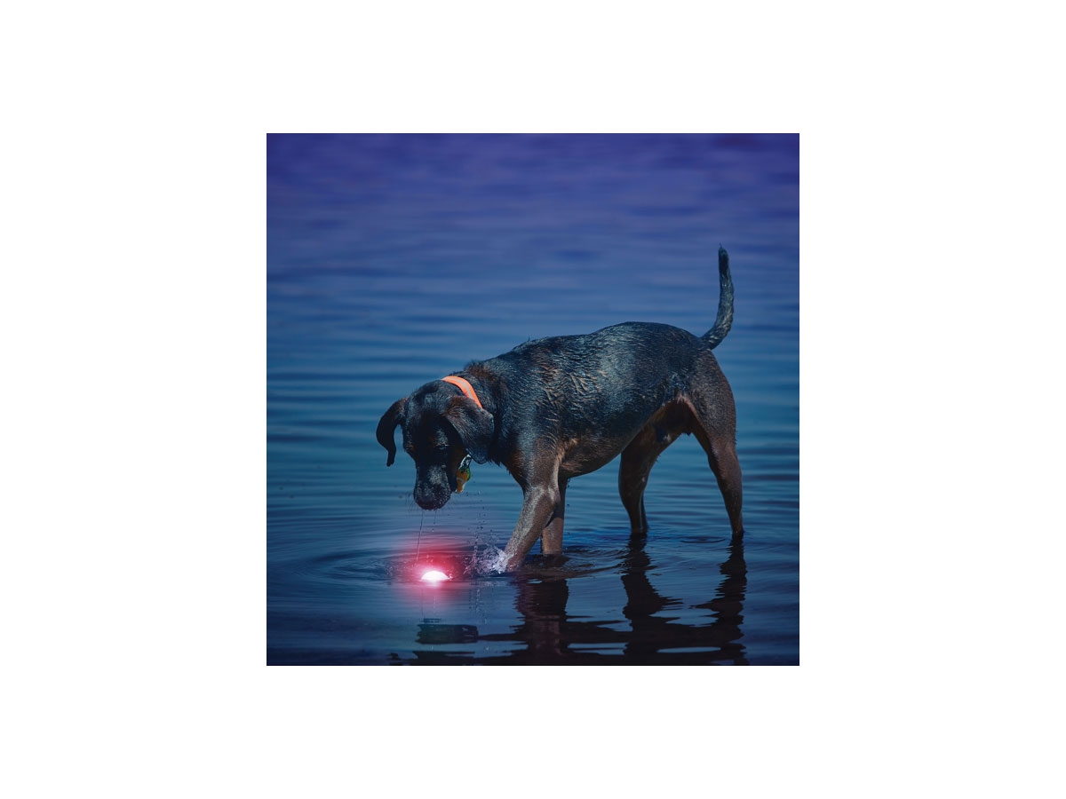 La GlowStreak Led Ball è una robusta palla di gomma che ad ogni rimbalzo si accende di rosso mantenendo il divertimento acceso e luminoso. Ha un nucleo interno protetto che contiene un avanzato modulo LED attivato dal movimento con LED rosso brillante, e si accende con un semplice rimbalzo. Dispone inoltre di una funzione di spegnimento automatico dopo dieci minuti senza rimbalzo (5 minuti di luce seguiti da 5 minuti di lampeggiamento), dando al cane il tempo di trovarlo se si distrae. Delle stesse dimensioni di una pallina da tennis resiste all'acqua o alla bava, galleggia ed è ottima per il cane che ama nuotare. L'esclusivo design scanalato sulla superficie crea un esterno adatto ai morsi sia per cani piccoli che grandi.