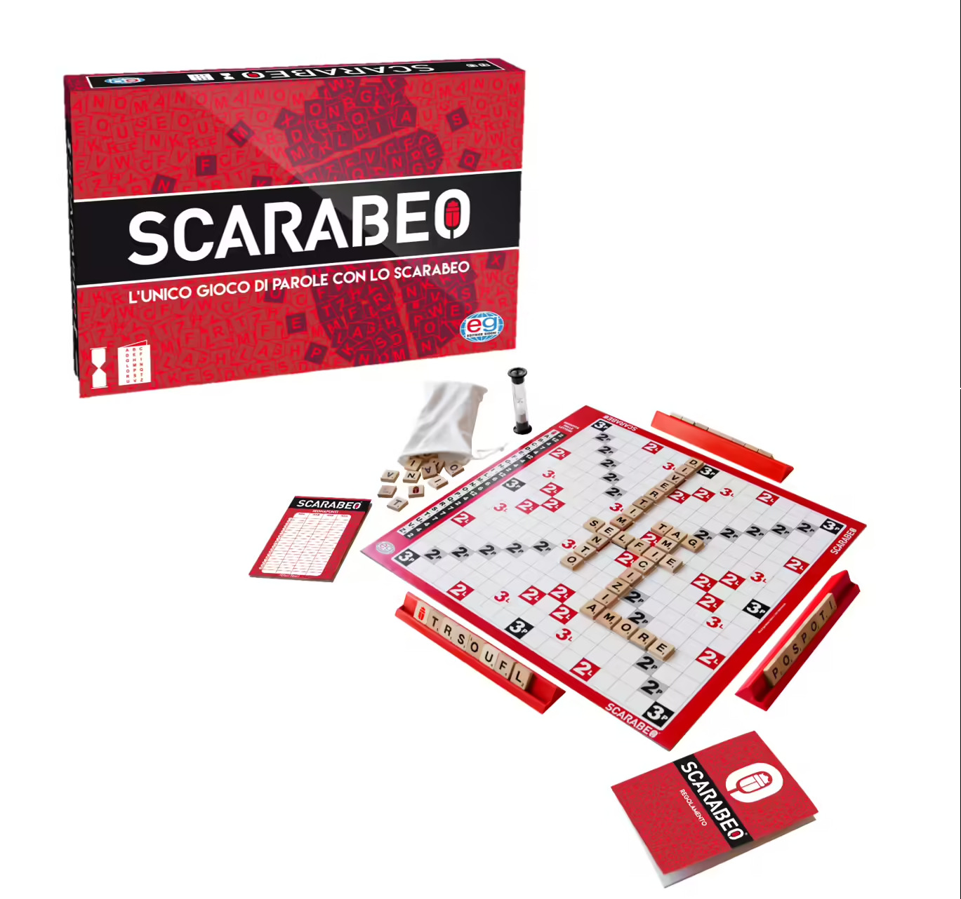 Scarabeo è il classico gioco da tavolo che appassiona adulti e bambini da ben 59 anni. Sinonimo di "gioco di parole in scatola" nella mente degli italiani, Scarabeo è facile da imparare e da giocare, rendendolo perfetto per serate di divertimento in famiglia o con gli amici.• Classico Intramontabile: Scarabeo è il più classico tra i giochi da tavolo, perfetto per divertirsi sfidando parenti e amici a comporre parole di senso compiuto sulla griglia della plancia. Vince chi accumula più punti sfruttando le caselle speciali e gli incroci con altre parole.• Stimola l'Utilizzo della Lingua Italiana: Ideale per allenare la conoscenza della lingua italiana, Scarabeo aiuta bambini e adulti a riflettere e comporre parole, utilizzando pazienza e vocabolario per ottenere i punteggi più alti.• Contenuto della Confezione: Il set include una plancia di gioco, quattro leggii in plastica, 130 tessere stampate con le lettere dell'alfabeto, una clessidra, un sacchetto in stoffa per le tessere, un blocchetto segnapunti e un regolamento contenente l'elenco aggiornato delle sigle.• Regole Semplici e Intuitive: Le regole di Scarabeo sono facili da apprendere, permettendo a tutti di giocare senza difficoltà. Il gioco è adatto a partire dagli 8 anni e può essere giocato da 2 a 4 giocatori.• Materiali di Alta Qualità: Le tessere delle lettere possono essere stampate su legno o plastica, a seconda della confezione. Tutti i componenti sono realizzati con materiali sicuri e durevoli per garantire una lunga durata del gioco.• Divertimento per Tutta la Famiglia: Scarabeo è perfetto per serate di gioco in famiglia o con gli amici, offrendo un'esperienza coinvolgente e educativa per tutti i partecipanti.Scarabeo è il regalo ideale per chi ama i giochi di parole e desidera trascorrere momenti di qualità con famiglia e amici. Con il suo design accattivante, le regole semplici e il meccanismo di gioco coinvolgente, questo gioco offre ore di divertimento per bambini e adulti.