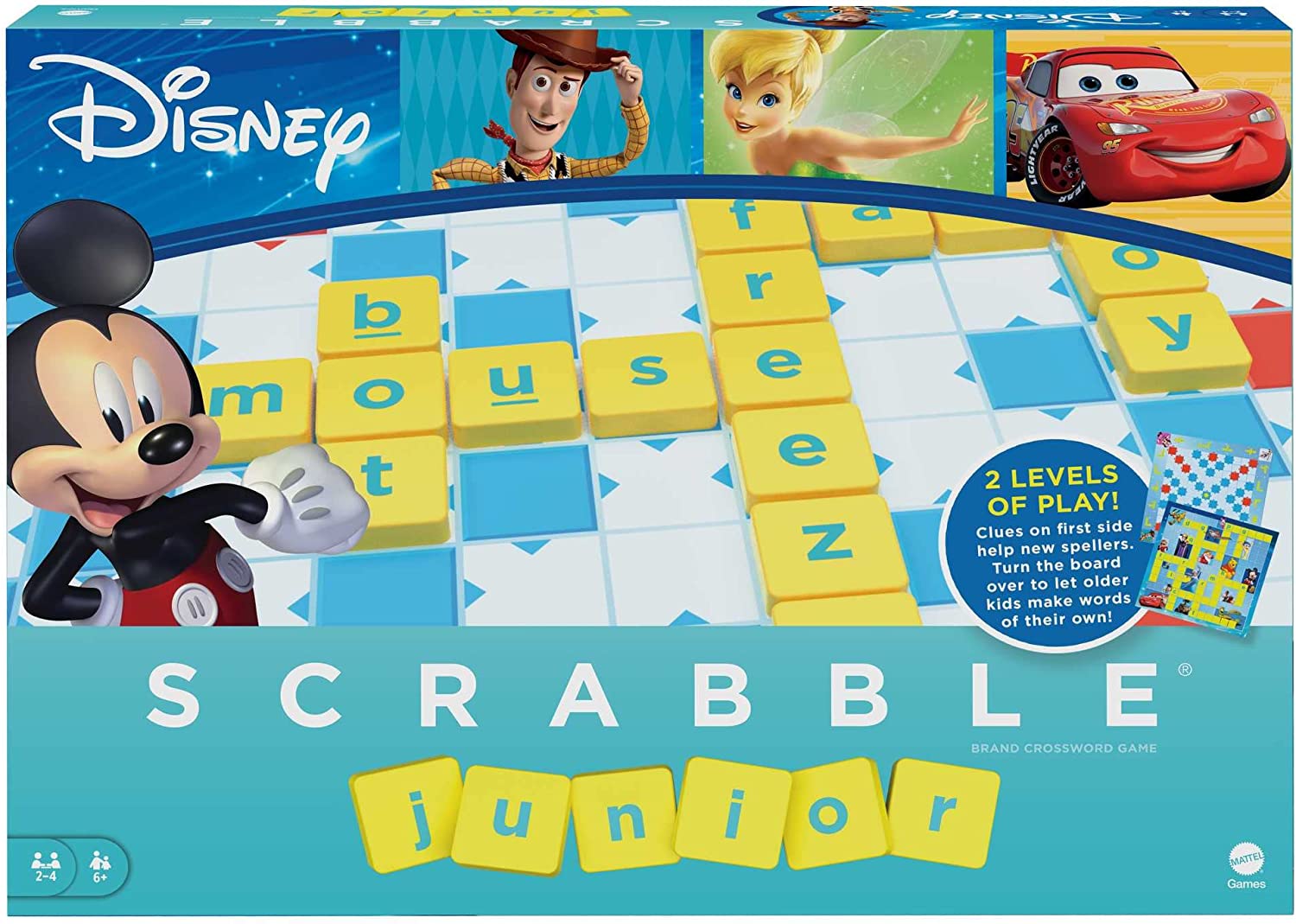 Scrabble Junior Disney è dotato di un tabellone a due lati. Da un lato, i bambini più piccoli possono imparare le lettere con l’aiuto di personaggi Disney familiari e uno schema in stile parole crociate adatto a loro. Una volta che avranno imparato le lettere e capito come comporre le parole, potranno girare il tabellone e giocare a Scrabble nel modo tradizionale, ma con una modalità di punteggio semplificata e suggerimenti utili per formare i vocaboli stampati lungo il bordo. Consigliato per 2-4 giocatori di età compresa tra 5 e 10 anni, questo gioco è il primo passo per far appassionare i bambini alle parole! Colori e decorazioni possono variare.Con Scrabble Junior Disney il divertimento raddoppia! Include due giochi in uno, per adattarsi ai progressi dei bambini nel loro percorso di apprendimento e composizione delle parole.Un lato del tabellone riproduce uno schema in stile parole crociate di ispirazione Disney che aiuta i bambini a formare le parole guidandoli con le immagini dei loro personaggi preferiti.Una volta che avranno maggiore dimestichezza con le parole, potranno passare all'altro lato e giocare alla versione tradizionale di Scrabble utilizzando segnapunti colorati e un sistema di punteggio semplificato adatto a loro.