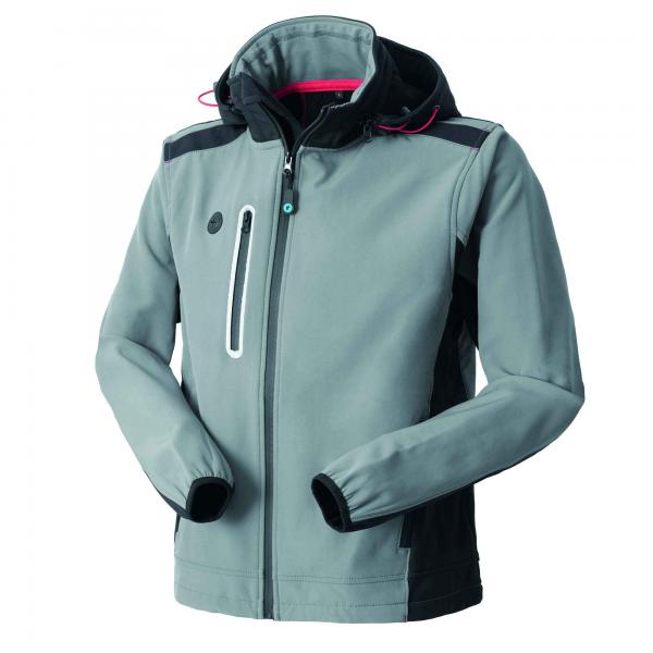 GIUBBOTTO SOFTSHELL CON CHIUSURA ANTERIORE CON CERNIERA CENTRALE ANTIPIOGGIA, CAPPUCCIO STACCABILE CON CERNIERA E COULISSE, PRATICO FORO IN SILICONE PER CUFFIE. UN TASCHINO A FILETTO AL PETTO DESTRO CHIUSO CON CERNIERA ANTIPIOGGIA VERTICALE E PROFILO RIFRANGENTE, DUE TASCHE INFERIORI A FILETTO CHIUSE CON CERNIERA ANTIPIOGGIA, INSERTI DI COLORE A CONTRASTO. 6000 MM WP/ 3000 MVP. TAGLIE DISPONIBILI: S, M, L, XL, XXL, XXXL, 4XL