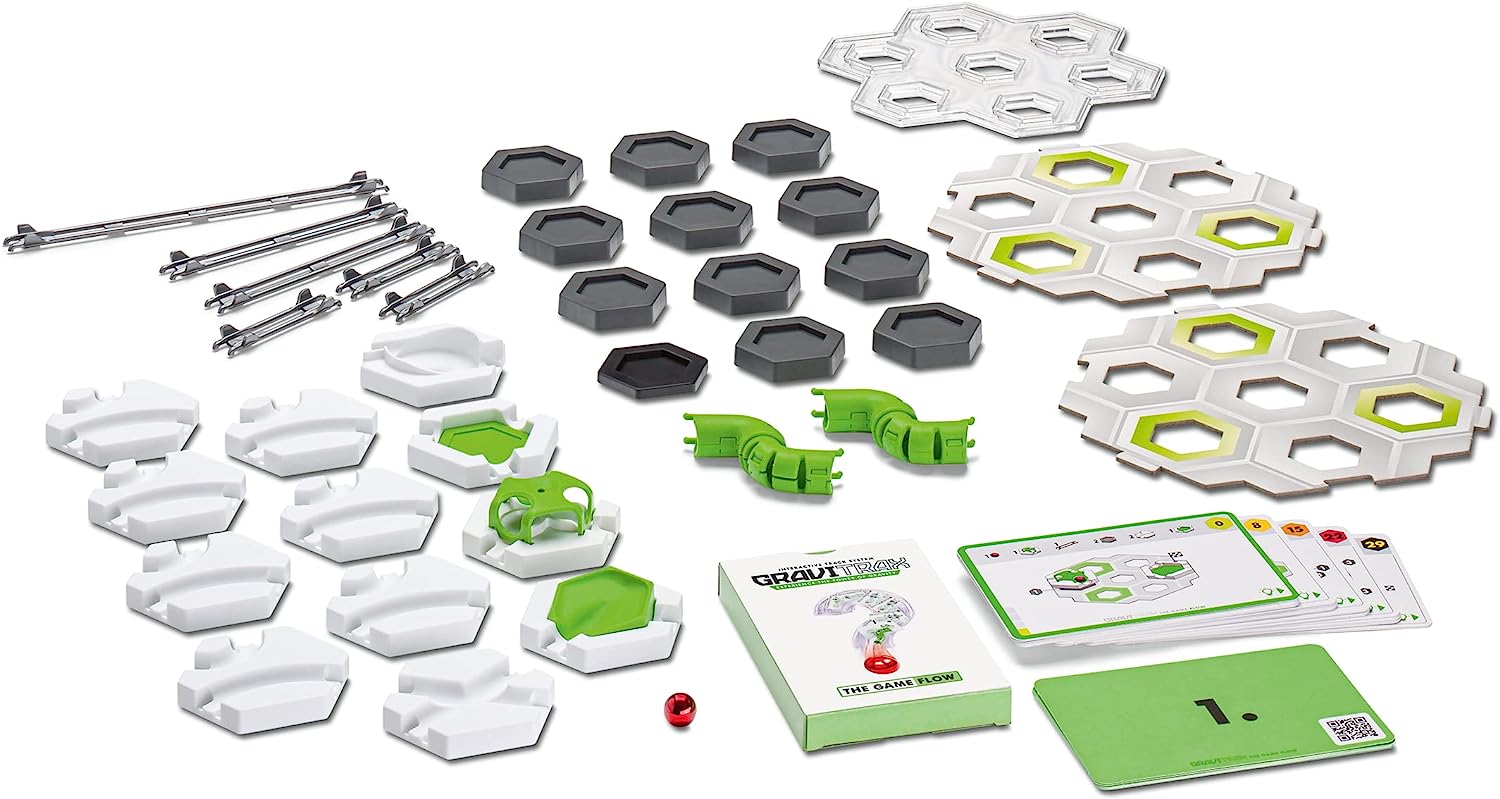 1 manuale istruzioni e 1 soluzioni, 30 carte sfida, 2 blocchi esagonali, 1 piccolo livello trasparente, 2 biglie, 1 elemento di partenza, 1 meta, 1 marmo, 2 FlexTube, 1 incrocio, 23 elementi e 6 binari Trenta sfide emozionanti guidate dalle carte sfida! Le 38 componenti del gioco tra cui 2 accessori Flextube, 11 blocchi verticali, 7 curve, 1 vortice, 1 biglia e tante altre possono essere utilizzate in tutte le piste GraviTrax! GraviTrax è un gioco innovativo ed educativo, permette infatti di apprendere concetti legati alla gravità, alla cinetica e al magnetismo coinvolgendo e facendo divertire, attraverso la costruzione delle proprie piste e percorsi, bambini e adulti GraviTrax è un gioco di costruzione STEM con cui potrai liberare la tua creatività costruendo un fantastico mondo di percorsi La possibilità di costruire piste di diversi livelli di difficoltà rende GraviTrax divertente e i pezzi aggiuntivi come le espansioni e gli accessori permettono di aumentare il divertimento