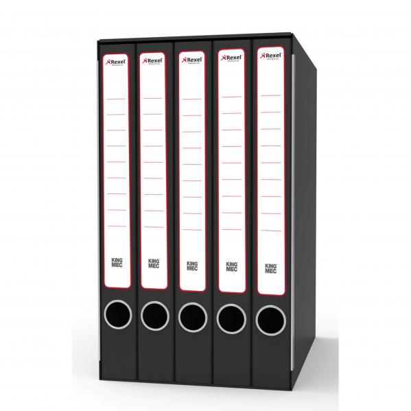 SISTEMA DI ARCHIVIAZIONE KING MEC COMPOSTO DA UN'UNICA CUSTODIA CON 5 CARTELLINE A TRE ALETTE (DORSO 4 CM FORMATO UTILE LXH 23X32 CM). STRUTTURA IN ROBUSTO CARTONE GRIGIO RIVESTITO CON CARTA GOFFRATA NERA ANTIMPRONTA. CUSTODIA IN TINTA CON PARABORDI. ANELLO DI ESTRAZIONE IN ACCIAIO. ETICHETTA ADESIVA GIA' POSIZIONATA SUL DORSO. IDEALE PER FOGLI CHE NON SONO DA PERFORARE. DIMENSIONI ESTERNE 23,5X25X35 CM.