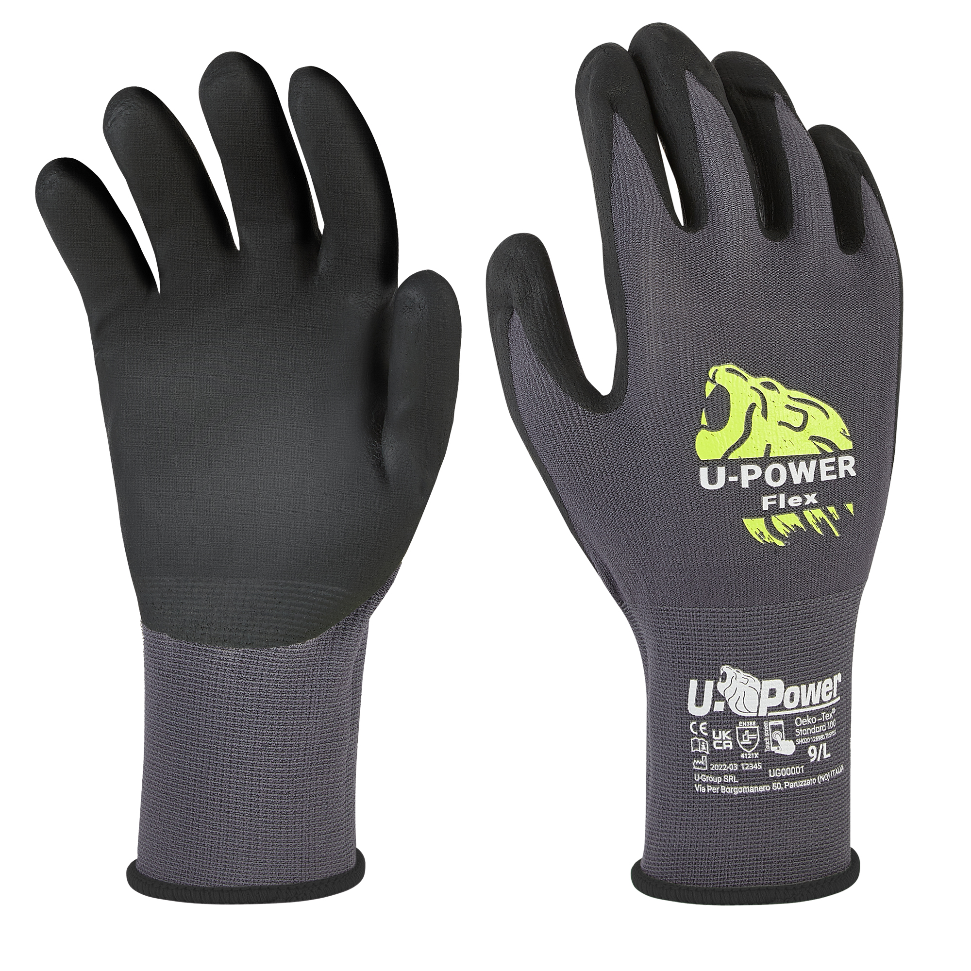 Guanti di protezione FLEX taglia 10 nero grigio c/polsino nero U-Power