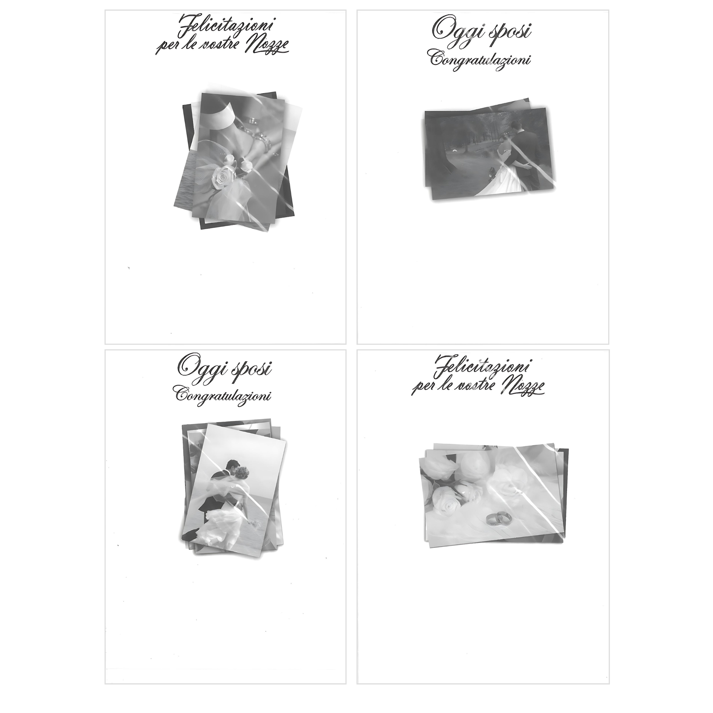 Il set di biglietti di auguri per matrimonio "Black & White" è perfetto per celebrare l’unione di due persone speciali con eleganza e raffinatezza. Ogni biglietto è caratterizzato da un design in bianco e nero, rendendolo una scelta sofisticata per congratularsi con i novelli sposi.• Design Elegante: I biglietti presentano immagini in bianco e nero che rappresentano momenti classici del matrimonio, offrendo un tocco di eleganza e semplicità.• Qualità Superiore: Realizzati con carta di alta qualità, i biglietti assicurano durabilità e un aspetto impeccabile, mantenendo intatta la loro bellezza nel tempo.• Dimensioni Ideali: I biglietti hanno una dimensione comoda che permette di scrivere messaggi personali all’interno, esprimendo al meglio i propri auguri.• Inclusi 12 Biglietti: Il set comprende 12 biglietti, sufficienti per diverse occasioni matrimoniali durante l'anno, rendendolo una scelta pratica ed economica.• Buste Incluse: Ogni biglietto viene fornito con la propria busta coordinata, pronta per essere spedita o consegnata di persona.Il set di biglietti di auguri per matrimonio "Black & White" è la scelta ideale per chi desidera celebrare un matrimonio con stile e raffinatezza, rendendo ogni augurio un gesto indimenticabile.