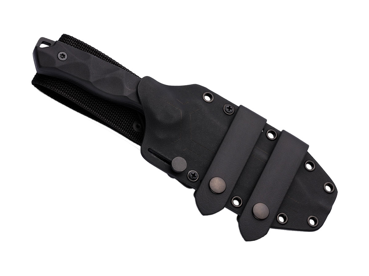 Il coltello full-tang è realizzato in acciaio Niolox ed è disponibile sia con rivestimento nero che desert tan. Come la maggior parte dei coltelli tattici disegnati da Alessandra De Santis (aka Hydra Design), l'HECATE II si distingue per una guardia con due fori triangolari che, insieme al foro all'estremità del manico, rimanda alla sua Idra a tre teste logo. L'impugnatura ergonomica è composta da guancette G10, con texture scolpita tridimensionale, e offre una presa salda sull'utensile. Il coltello viene fornito con un fodero in Kydex con adattatore per passante da cintura, abbinato ad un passante in gomma morbida, per il trasporto sia orizzontale che verticale.