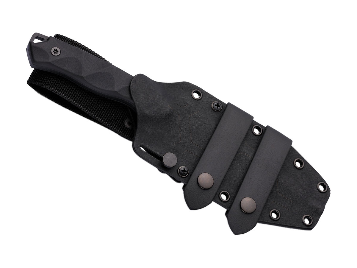 Il coltello full-tang è realizzato in acciaio Sleipner ed è disponibile sia con rivestimento nero che desert tan. Come la maggior parte dei coltelli tattici disegnati da Alessandra De Santis (aka Hydra Design), il PHOBOS si distingue per una guardia con due fori triangolari che, insieme al foro all'estremità del manico, richiama l'Idra a tre teste del suo logo . L'impugnatura ergonomica è composta da guancette G10, con texture scolpita tridimensionale, e offre una presa salda sull'utensile. Il coltello viene fornito con un fodero in Kydex con adattatore per passante da cintura, abbinato ad un passante in gomma morbida, per il trasporto sia orizzontale che verticale.