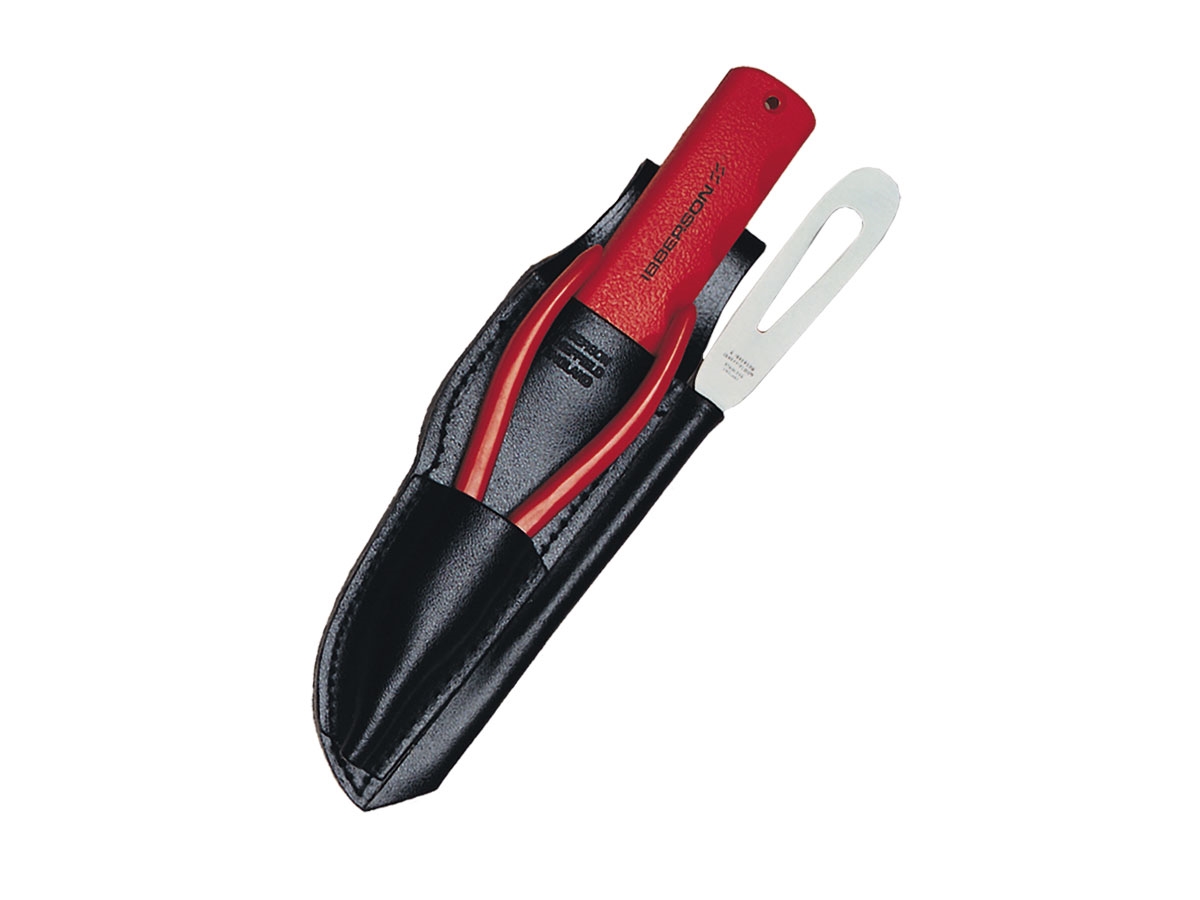 Kit da barca composto da tre attrezzi inseriti in un comodo fodero in cuoio nero.
