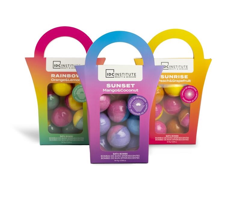 Con IDC Institute Bombe da Bagno Cocktail ogni bagno diventa un momento di piacere multisensoriale. La confezione contiene 8 mini sfere effervescenti da 15 g ciascuna, racchiuse in un pratico sacchetto colorato con manico, facile da portare e perfetto anche come idea regalo. Ogni set è disponibile in tre diverse profumazioni, studiate per evocare momenti e atmosfere specifiche: Rainbow, Sunset e Sunrise. A contatto con l’acqua, le bombe si sciolgono sprigionando fragranze avvolgenti e un delicato effetto frizzante che trasforma la vasca in un rifugio di relax, energia o freschezza.• Confezione pratica: Ogni sacchetto contiene 8 bombe da bagno da 15 g, in un formato compatto che rende l’esperienza versatile e adatta a più utilizzi, anche in vasche di piccole dimensioni.• Rainbow Arancia e limone: Una fragranza agrumata e vivace che sprigiona energia e vitalità, perfetta per chi cerca un bagno tonificante e carico di buonumore.• Sunset Mango e cocco: Un profumo esotico e avvolgente che combina dolcezza tropicale e morbidezza cremosa, ideale per un bagno serale rilassante e sensuale.• Sunrise Pesca e pompelmo: Una nota fruttata fresca e leggermente acidula che stimola i sensi e dona una carica positiva, perfetta per iniziare la giornata con energia.• Esperienza frizzante: Le mini bombe si dissolvono velocemente rilasciando effervescenza e aromi delicati che arricchiscono l’acqua e regalano una piacevole sensazione di benessere.Le IDC Institute Bombe da Bagno Cocktail non sono solo un prodotto di bellezza, ma un invito a vivere il bagno come un rituale di cura personale. Grazie al formato pratico e alle tre profumazioni ispirate a momenti unici della giornata, trasformano ogni immersione in un’esperienza emozionante che unisce relax, freschezza ed energia.