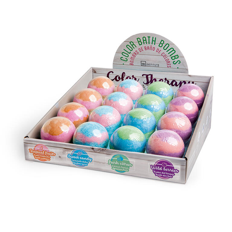 Le bombe da bagno IDC Institute Multicolor da 140 g trasformano il momento del bagno in un’esperienza sensoriale completa, ricca di colori, profumi e piacevoli effervescenze. Ogni bomba è formulata con ingredienti che, a contatto con l’acqua, sprigionano fragranze avvolgenti e rilasciano sostanze emollienti che rendono la pelle più morbida e vellutata. La varietà di aromi e tonalità rende ogni utilizzo unico, permettendo di scegliere la profumazione più adatta al proprio stato d’animo o all’occasione. La sfera compatta e vivace si dissolve lentamente, regalando un bagno rilassante e allo stesso tempo rigenerante, ideale per concedersi una coccola dopo una giornata intensa o per arricchire un momento di relax.• Frutti tropicali: Una fragranza energizzante e frizzante che richiama l’esotico, perfetta per ricaricare corpo e mente con note fruttate e solari.• Caramelle dolci: Un aroma morbido e avvolgente che richiama la dolcezza delle caramelle, ideale per creare un’atmosfera rilassante e confortevole.• Agrumi freschi: Una miscela rinfrescante e vivace che sprigiona vitalità, contribuendo a donare nuova energia grazie a note agrumate intense e rivitalizzanti.• Frutti di bosco: Un profumo stimolante e brioso che mescola le note dolci e acidule delle bacche selvatiche, perfetto per risvegliare i sensi e migliorare l’umore.• Esperienza multisensoriale: Le bombe da bagno non solo profumano l’acqua, ma creano un gioco di colori effervescenti che rendono il bagno più divertente e coinvolgente.• Pelle morbida e idratata: Grazie alla loro composizione, rilasciano principi emollienti che contribuiscono a mantenere la pelle liscia e nutrita anche dopo il bagno.Ogni bagno con le bombe IDC Institute diventa un momento speciale, unendo aromaterapia, colore e cura della pelle in un unico rituale. La confezione assortita permette di variare fragranze e sensazioni, rendendo questa linea adatta sia a chi ama il relax profondo sia a chi cerca energia e positività.