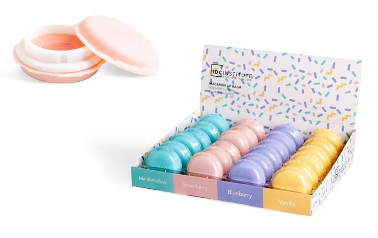 Scopri il Candy Macaron Lip Balm di IDC Institute, il balsamo labbra dalla forma irresistibile di macaron che unisce idratazione, dolcezza e divertimento in un unico prodotto. Perfetto per nutrire e proteggere le labbra con un tocco di originalità e golosità, è disponibile in quattro deliziose fragranze.• 4 fragranze irresistibili: un assortimento di Vaniglia, Fragola, Mirtillo e Marshmallow, per labbra profumate e golose in ogni momento della giornata.• Idratazione profonda e nutrimento: arricchito con ingredienti emollienti che proteggono le labbra dalla secchezza, lasciandole morbide e vellutate.• Texture leggera e confortevole: dona una sensazione di freschezza e idratazione senza ungere, perfetto per un uso quotidiano.• Design unico a forma di macaron: un packaging colorato e originale, perfetto come idea regalo o per un tocco di stile nella tua routine di bellezza.• Formato pratico da 5g: compatto e comodo da portare sempre con sé, in borsa, nello zaino o nel beauty case.• Espositore con 24 pezzi: ideale per punti vendita, profumerie e negozi di cosmetici, con una selezione completa delle 4 profumazioni più amate.Il Candy Macaron Lip Balm di IDC Institute è il balsamo perfetto per idratare e coccolare le labbra con dolci fragranze, regalando un sorriso morbido e luminoso in ogni occasione.Misure del prodotto: 1,7 x 4 x 4 cm