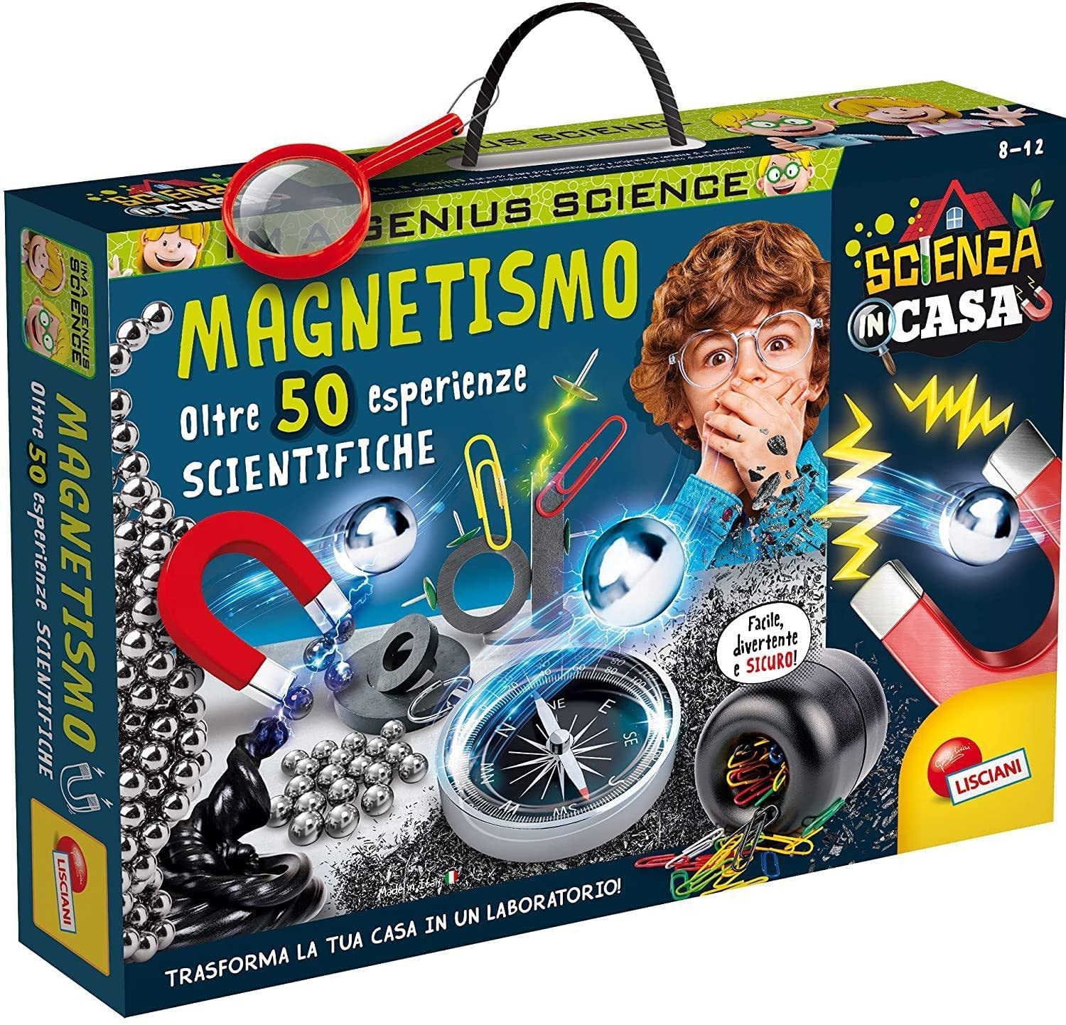 Il kit scientifico "I'M A GENIUS - Scienza in Casa - Magnetismo" è un entusiasmante set educativo che permette ai bambini di scoprire i segreti del magnetismo attraverso oltre 50 esperimenti scientifici. Ideale per bambini dagli 8 ai 12 anni, questo kit trasforma la casa in un vero e proprio laboratorio scientifico.• Scopri il Magnetismo: Questo kit offre un'introduzione completa al fenomeno del magnetismo, esplorando i campi magnetici e i poli opposti. I bambini potranno divertirsi a far muovere oggetti con la forza invisibile dei magneti e a creare bussole utilizzando oggetti comuni trovati in casa.• Componenti Inclusi: Il kit comprende una serie di magneti e polvere di ferro, che permettono di eseguire una varietà di esperimenti pratici e istruttivi. Ogni componente è stato selezionato per garantire un'esperienza educativa sicura e coinvolgente.• Manuale Illustrato: Incluso nel kit c'è un manuale illustrato che guida i bambini passo dopo passo attraverso ogni esperimento. Le istruzioni chiare e le immagini dettagliate rendono facile seguire le attività e comprendere i principi scientifici alla base degli esperimenti.• Charm Lente d'Ingrandimento: Per rendere l'esperienza ancora più interattiva, il kit include un charm lente d'ingrandimento, perfetto per osservare da vicino i dettagli dei fenomeni magnetici e dei materiali utilizzati negli esperimenti.• Oltre 50 Esperienze Scientifiche: Con più di 50 esperimenti diversi, questo kit offre infinite ore di divertimento e apprendimento. I bambini potranno esplorare, sperimentare e scoprire il mondo del magnetismo in modo pratico e stimolante.Il kit "I'M A GENIUS - Scienza in Casa - Magnetismo" è il regalo perfetto per i giovani scienziati in erba. Con un mix di divertimento e istruzione, questo set incoraggia l'interesse per la scienza e la curiosità naturale dei bambini, rendendo l'apprendimento un'avventura emozionante.