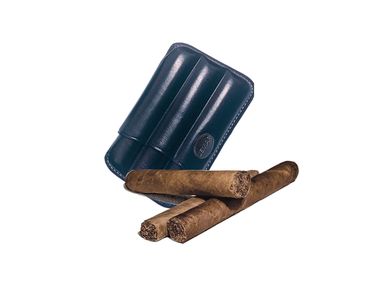 Jemar PORTASIGARI SCANALATO CUOIO 3 SIGARI TOSCANI 460/3 BLU