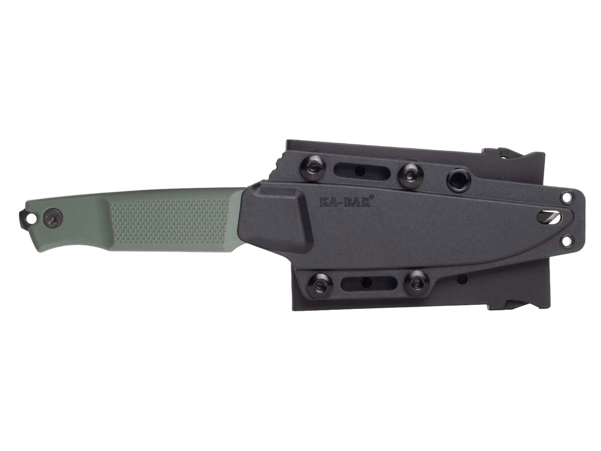 L'Apex è stato progettato da Petr Janda, un designer di lunga data di KA-BAR, precedentemente noto per la sua linea di coltelli FIN. L'Apex è un coltello a lama fissa sottile ma robusto, per agilità e precisione in qualsiasi scenario di sopravvivenza. Realizzato in resistente acciaio per utensili D2, la sua lama clip point nera offre un'eccellente ritenzione del filo e resistenza. L'impugnatura verde GFN offre una presa sicura, assicurando controllo e comfort in qualsiasi situazione. Viene fornito con un fodero in plastica rigida per un trasporto sicuro.