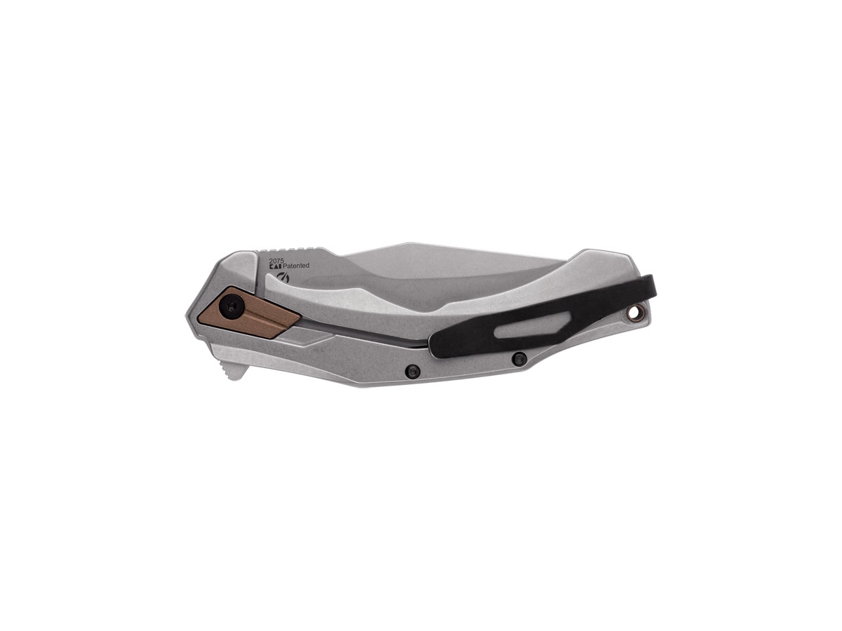 Il Payout Laffitte è un coltello dalla grande lama da 3,5 pollici in acciaio D2. Presenta una parte superiore esclusiva che conferisce al coltello un aspetto dinamico e allevia parte del peso della grande lama. La parte anteriore del manico, in acciaio lavorato e G10 nero, è arricchita da un perno decorativo e da un anello in alluminio anodizzato in rame. La parte posteriore della maniglia fa eco all'anello di articolazione con un arresto di escursione personalizzato, anch'esso anodizzato in rame. Il tocco finale color rame è lo stallo, che funge anche da foro per cordino.