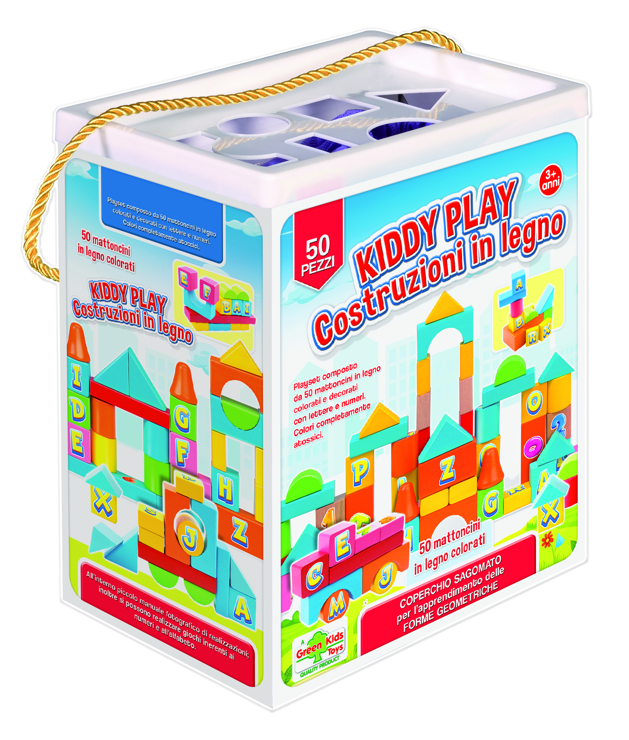 Il Kiddy Play Costruzioni in Legno offre ai piccoli costruttori un mondo di possibilità creative. Questo playset è composto da 50 blocchetti in legno, ognuno abilmente colorato e decorato con lettere, numeri e forme geometriche. Progettato per bambini di età superiore ai 3 anni, questo set non solo stimola la creatività ma anche l'apprendimento e il riconoscimento di concetti fondamentali in modo divertente e interattivo.• Educazione e Divertimento: Con i suoi blocchetti decorati con lettere e numeri, il set incoraggia l'apprendimento precoce della lettura, della scrittura e del calcolo, mentre i colori vivaci e le forme stimolano la percezione visiva e la creatività.• Materiali Sicuri e Duraturi: Realizzati in legno di alta qualità e dipinti con colori completamente atossici, questi mattoncini sono sicuri per i bambini e costruiti per durare, garantendo ore di gioco sicuro.• Coperchio Sagomato per l'Apprendimento delle Forme: Il coperchio della scatola è dotato di aperture sagomate che corrispondono alle diverse forme dei blocchetti, offrendo un'ulteriore attività educativa che aiuta i bambini a sviluppare la coordinazione occhio-mano e a riconoscere le forme geometriche.• Stimolazione dell'Immaginazione: Questo set di costruzioni in legno permette ai bambini di esplorare e costruire liberamente, promuovendo il pensiero creativo, la risoluzione di problemi e la pianificazione spaziale attraverso il gioco.• Ideale per il Gioco di Gruppo: Con 50 pezzi disponibili, il Kiddy Play Costruzioni in Legno è perfetto per incoraggiare il gioco di gruppo, la condivisione e l'interazione sociale tra bambini, rendendolo un ottimo strumento per lo sviluppo delle abilità sociali.Il Kiddy Play Costruzioni Legno 50 Blocchetti è l'ideale per i genitori che cercano un giocattolo educativo che incoraggi l'apprendimento attraverso il gioco. Questo set offre un'esperienza di gioco arricchente che combina divertimento, educazione e sviluppo delle abilità motorie e cognitive, rendendolo un regalo perfetto per i piccoli appassionati di costruzioni.