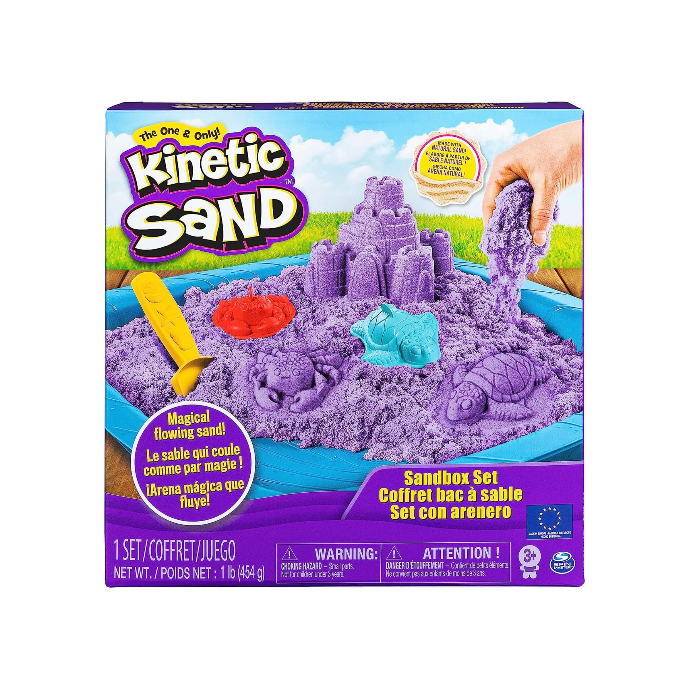 Kinetic Sand: sabbia cinetica colorata unica al tatto, la sabbia magica ideale per tutte le creazioni! Questa sabbia colorata e magica per bambini e bambine può essere modellata a proprio piacimento grazie alle 3 formine incluse nella confezione. Con i 454 grammi di sabbia colorata (nelle varianti viola, blu e verde), le 3 formine (castello, tartaruga, granchio) e la paletta non c'è limite a quello che si può creare. Il vassoio da gioco incluso ha un'ampia superficie per contenere tutta la sabbia cinetica Kinetic Sand e le formine. Kinetic Sand è composta al 98% di sabbia naturale, proveniente dalla Svezia, e la sensazione tattile è unica nel suo genere. Una volta aperta non secca mai, non lascia macchie ed è facile da raccogliere. Senza glutine, frumento nè caseina, è una sabbia colorata completamente sicura per i bambini. Si riceverà in maniera casuale una delle varianti disponibili, senza possibilità di scelta.
