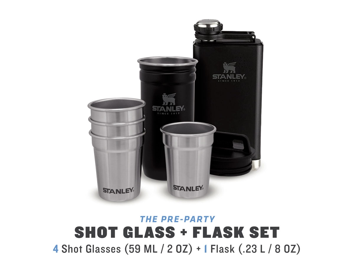 Stanley ADVENTURE PRE-PARTY SHOT GLASS + FLASK SET 6 pz Matte Black Pebble
