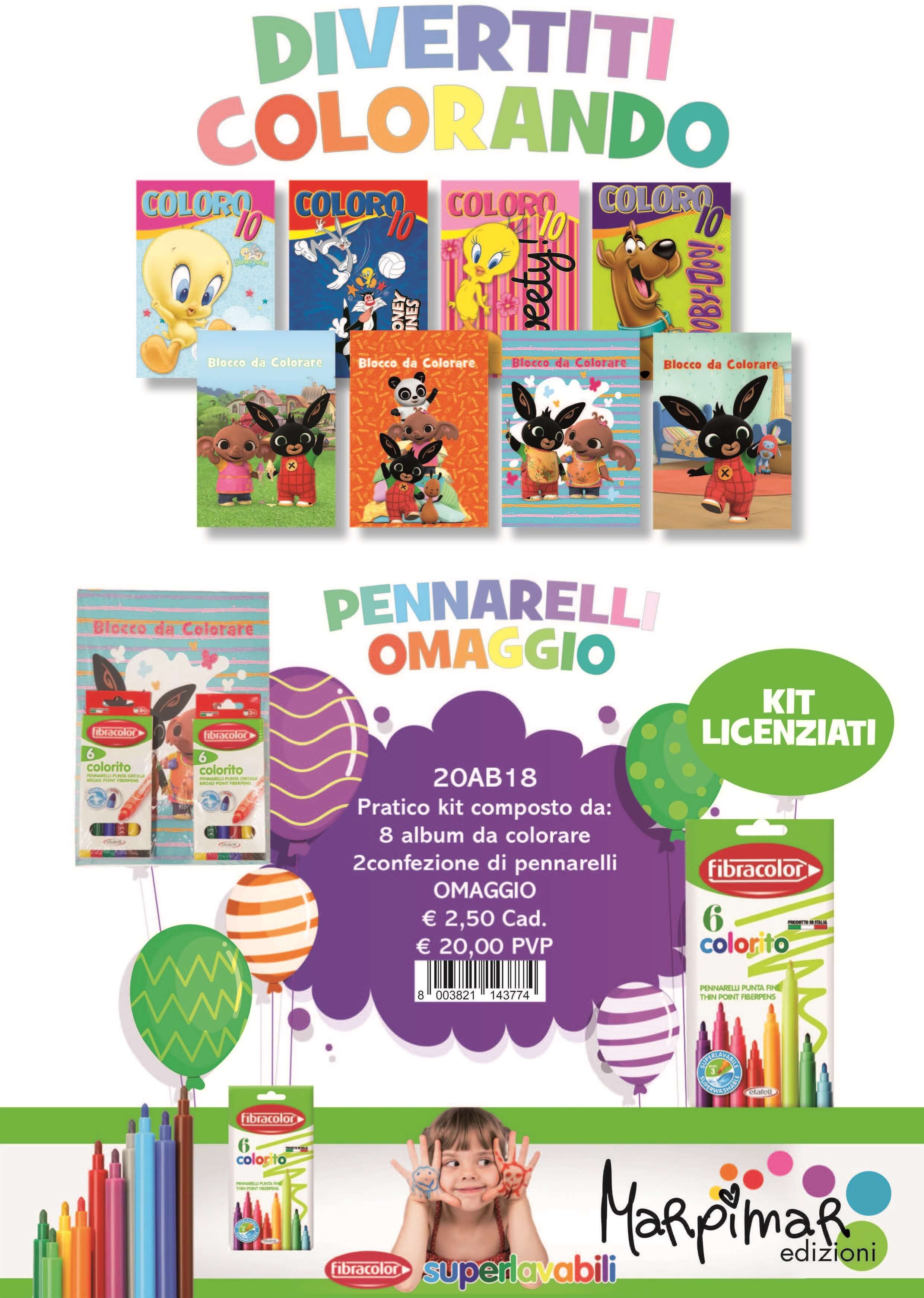 KIT 8 LIBRI DA COLORARE + 2 CF. PENNARELLI OMAGGIO - 20AB18