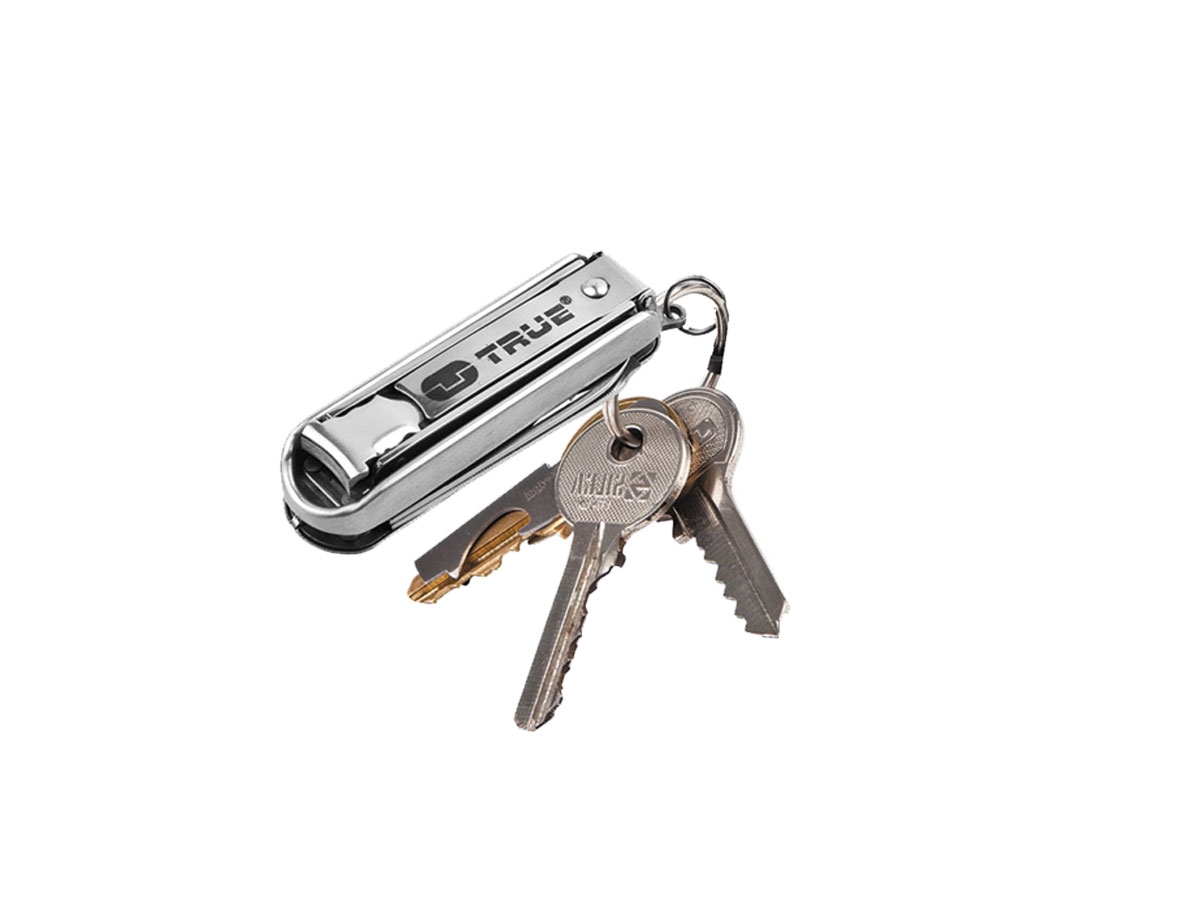 -  Trim per unghie- Limetta - Coltellino  - Cacciavite  -  Forbici  -  Anello portachiavi da 10 mm