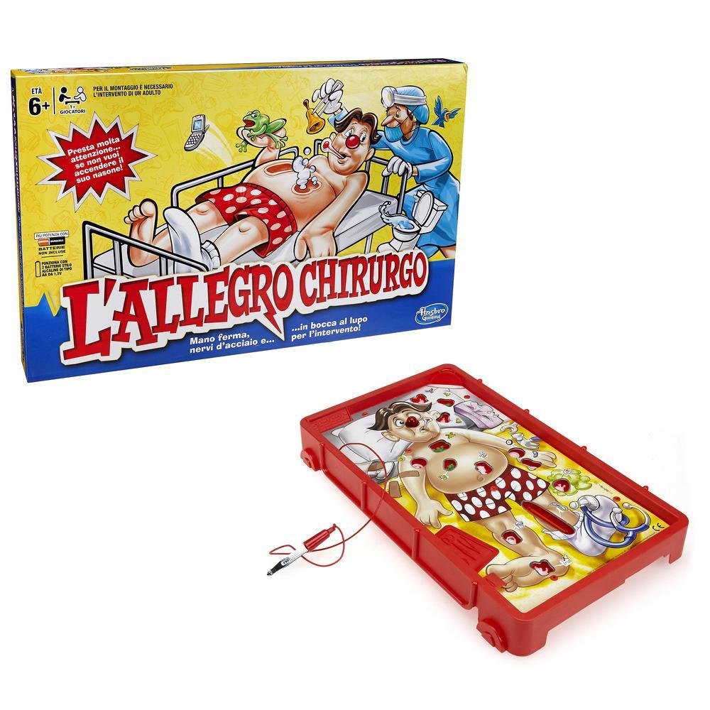 L'Allegro Chirurgo è il gioco ideale per tutti i piccoli aspiranti medici! Mettiti alla prova con operazioni chirurgiche delicate e divertenti, sfidando i tuoi amici in un gioco che richiede precisione e nervi saldi.• Sfida di Precisione: Munisciti di polso fermo e nervi d’acciaio per affrontare le operazioni più bizzarre. Usa le pinzette chirurgiche per estrarre le parti doloranti dal corpo del paziente senza toccare i bordi metallici delle cavità.• Interazione Divertente: Se tocchi i bordi metallici, il paziente inizierà a lamentarsi, il suo naso rosso si illuminerà e comincerà a ronzare, aggiungendo un elemento di tensione e divertimento al gioco.• Componenti di Alta Qualità: Il set include una plancia di gioco rappresentante il corpo del paziente, carte delle operazioni e pinzette chirurgiche. Tutti i componenti sono realizzati con materiali sicuri e durevoli.• Regole Semplici: Le regole intuitive permettono a tutti di giocare senza difficoltà. Basta pescare una carta, impugnare le pinzette e cercare di completare l'operazione senza far scattare l'allarme.• Adatto ai Bambini: Consigliato per bambini dai 6 anni in su, L'Allegro Chirurgo è perfetto per giocare in famiglia o con gli amici. È ideale per sviluppare la coordinazione occhio-mano e la precisione.• Gioco per 1-6 Giocatori: L'Allegro Chirurgo è pensato per essere giocato da uno a sei giocatori, rendendolo perfetto per piccole e grandi compagnie.L'Allegro Chirurgo è il regalo perfetto per i piccoli amanti dei giochi interattivi e divertenti. Con il suo design colorato, le regole semplici e il meccanismo di gioco coinvolgente, questo gioco offre ore di divertimento per bambini e famiglie.