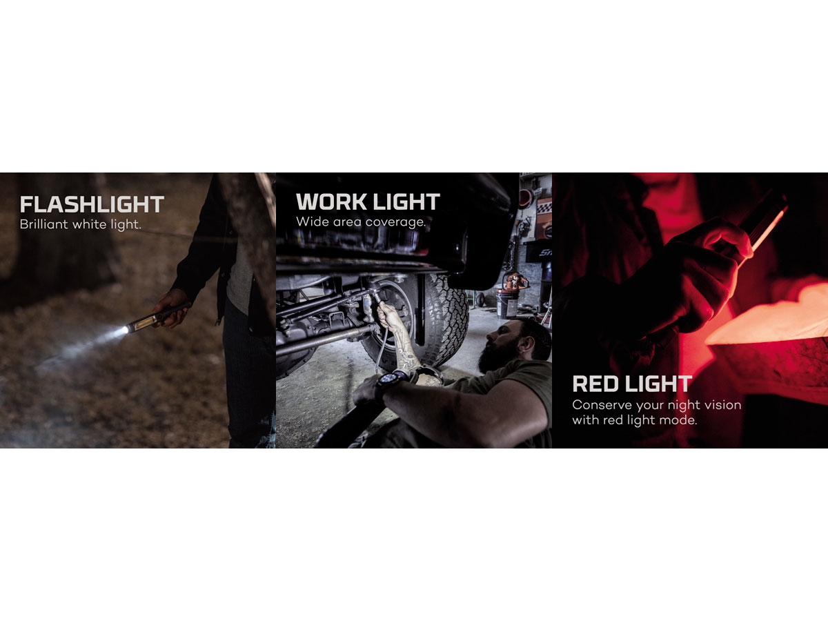 - Completamente ricaricabile- C.O.B. (contiene più chip LED per fornire un fascio di luce più forte e più uniforme)- Alluminio aeronautico anodizzato- Resistente all'acqua (IPX4)- Regolazione oscurità- Base magnetica- Cavo di ricarica micro USB- Clip retrattile