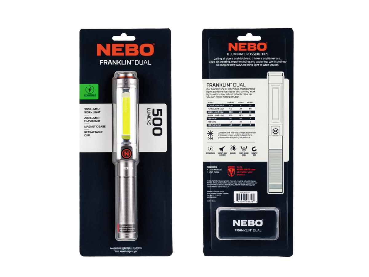 NEBO FRANKLIN DUAL Ricaricabile 500 Lumens LED WLT-0022