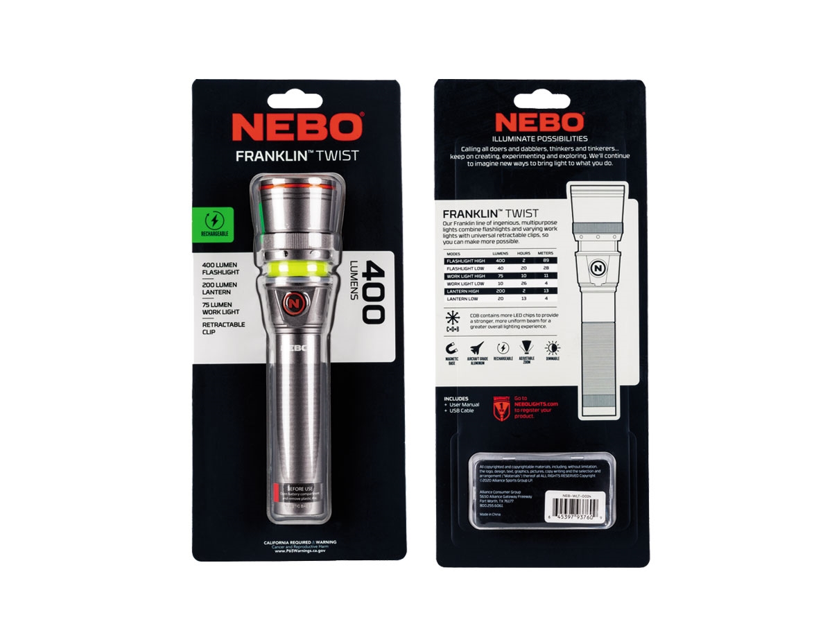 - Completamente ricaricabile- C.O.B. (contiene più chip LED per fornire un fascio di luce più forte e più uniforme)- Alluminio aeronautico anodizzato- Resistente all'acqua (IPX4)- Regolazione oscurità - Base magnetica- Cavo di ricarica micro USB- Clip retrattile