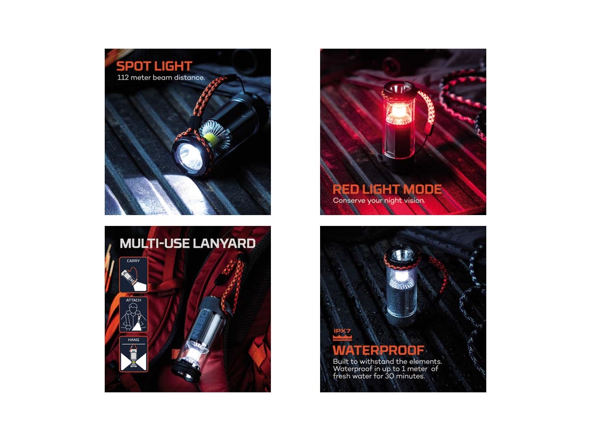 La lanterna Galileo Tempest 350 è una potente fonte di luce e versatilità compatta, pronta a migliorare le tue esperienze all'aria aperta. Utilizza la tecnologia ARCUS COB per produrre 360 o 120 gradi di luce bianca o rossa brillante ed offre una funzione di faretto che porta precisione alle tue esigenze di illuminazione. Il cordino versatile assicura una portabilità senza sforzo, mentre la base della lanterna incorpora un potente magnete e robusti ganci di sospensione in metallo, offrendo la praticità di avere le mani libere per adattarsi a qualsiasi ambiente. Alimentata da tre batterie AA, non è solo una fonte di luce è un compagno affidabile progettato per illuminare le tue avventure.