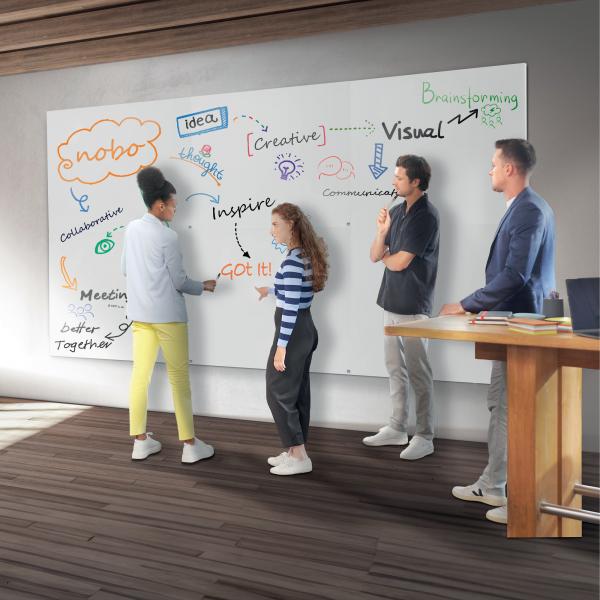 La lavagna a parete è ideale per le attività di collaborazione, come le sessioni di brainstorming e di pianificazione, in qualsiasi ambiente di lavoro. Semplice da installare, il sistema di montaggio magnetico permette ai pannelli senza cornice di stare insieme senza problemi sia in orientamento verticale che orizzontale. Le lavagne in acciaio hanno una superficie indurita dai raggi UV per una pulizia agevole e una finitura liscia e impeccabile