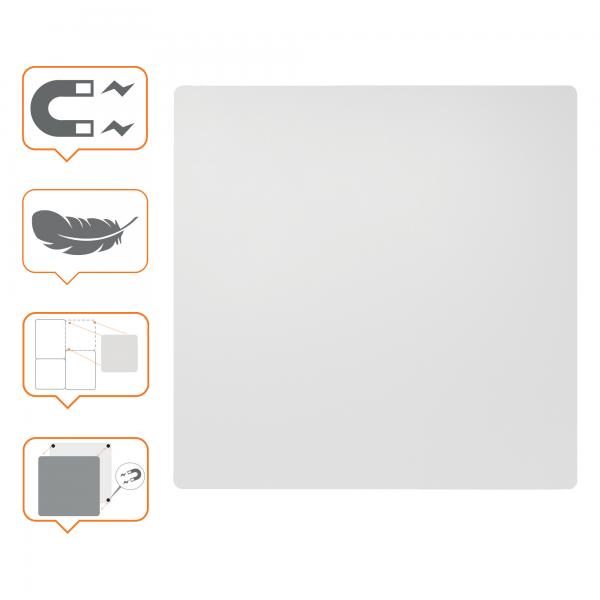 Questa elegante lavagna magnetica senza cornice è lo strumento di collaborazione ideale per qualsiasi ambiente d'ufficio. Il suo design modulare consente di creare e ampliare lo spazio di scrittura in base alle proprie esigenze, senza alcun limite. Grazie all'innovativo sistema di montaggio magnetico, le lavagne leggere possono essere facilmente rimosse per essere utilizzate su una superficie piana e reinserite a parete in qualsiasi momento, offrendo la massima flessibilità. Lavagna magnetica in acciaio Dimensioni 60x45cm.