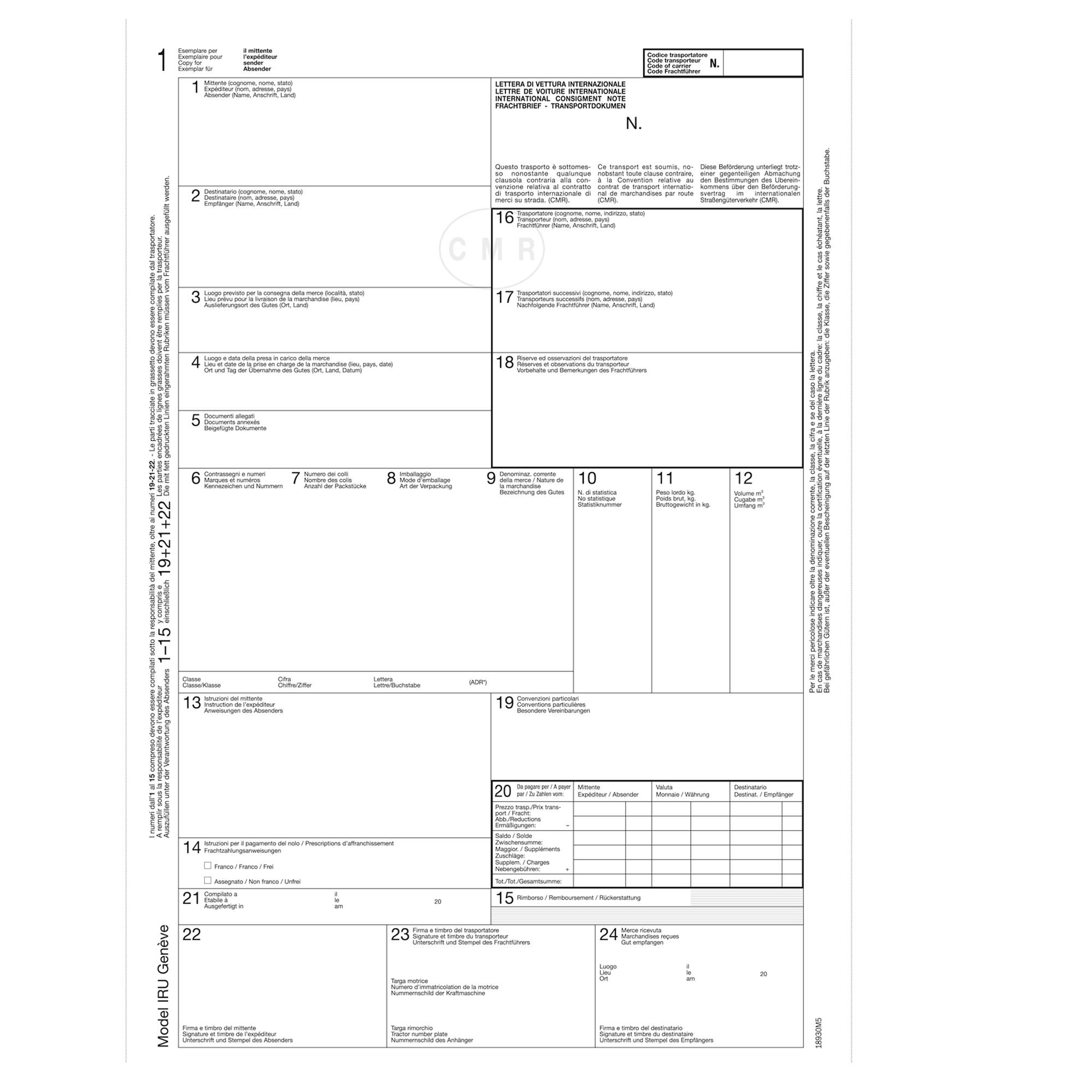 Lettera di vettura internazionale CMR MC 5copie autor.12x24cm DU18930M500 DU Com