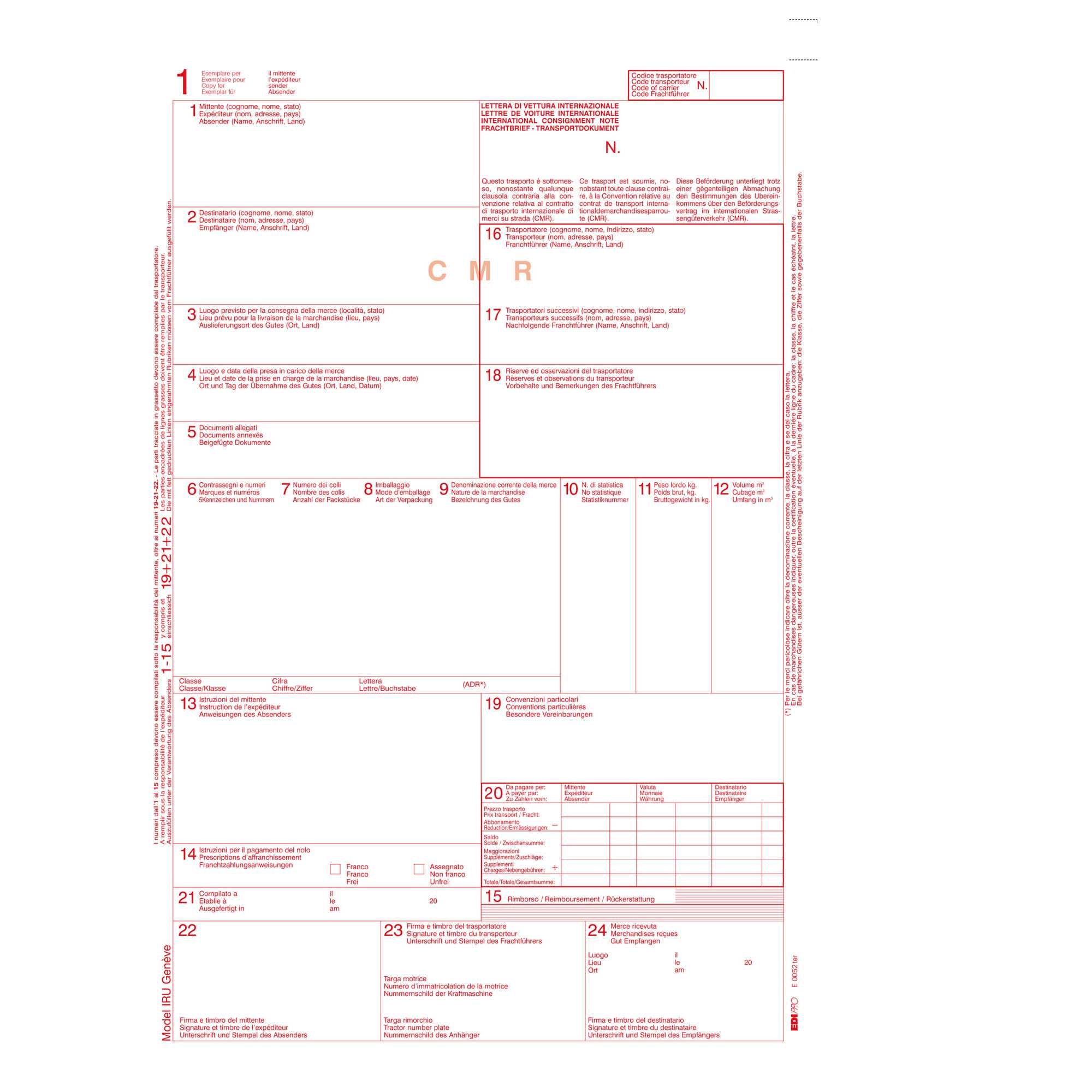 50 FOGLI SNAP 5 COPIE C.M.R. LETTERA VETTURA INTERNAZ. E0052TER EDIPRO