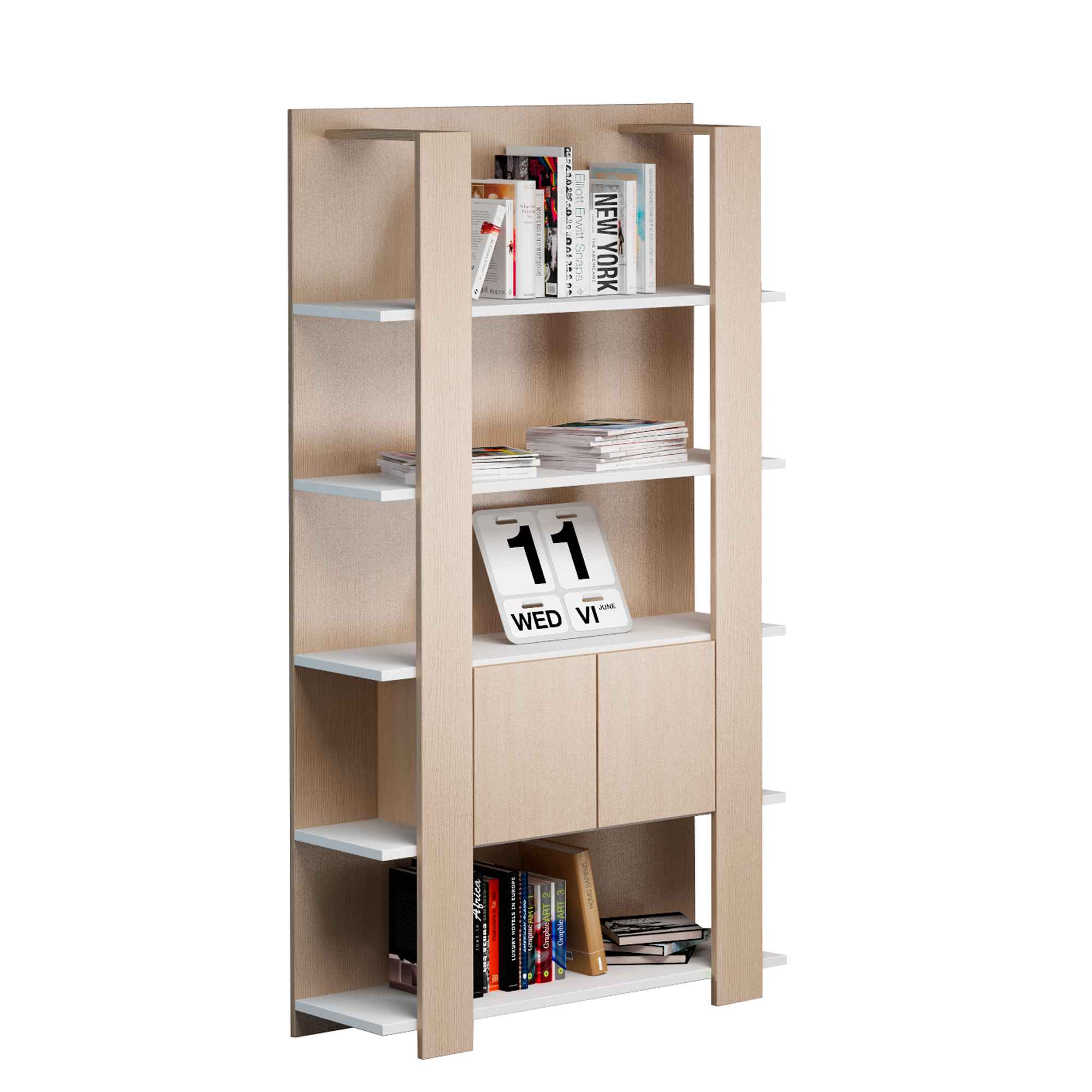 LIBRERIA CONCEPT ALTA A GIORNO A 5 RIPIANI FISSI. STRUTTURA IN TRUCIOLARE NOBILITATO MELAMINICO. RIPIANI FISSI SEMPRE BIANCHI SP.22 MM. SOLIDO RETRO SPESSORE 18MM IN FINITURA DELLA LIBRERIA. LARGHEZZA INTERNA TRA LE FASCE 60CM. SPAZIO TRA I RIPIANI IN ALTEZZA 35CM. ANTINE IN FINITURA DISPONIBILI A PARTE. DIMENSIONI: L100 X P38,6 X H198CM.