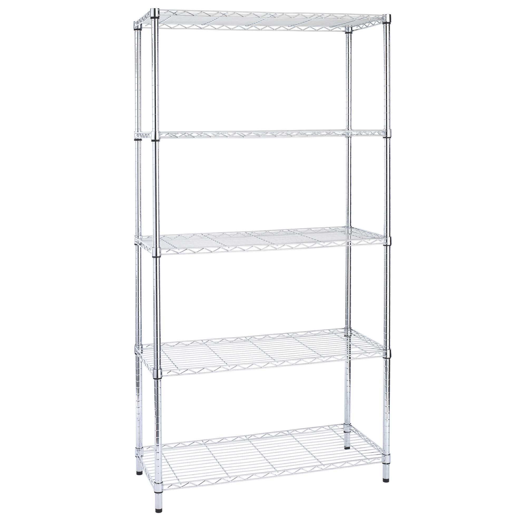 LIBRERIE IN ACCIAIO CROMATO CON TUBOLARI DIAMETRO 2,54 E PIEDINI REGOLABILI. 5 RIPIANI - 36X90CM H177CM. PORTATA MAX 25KG PER RIPIANO.