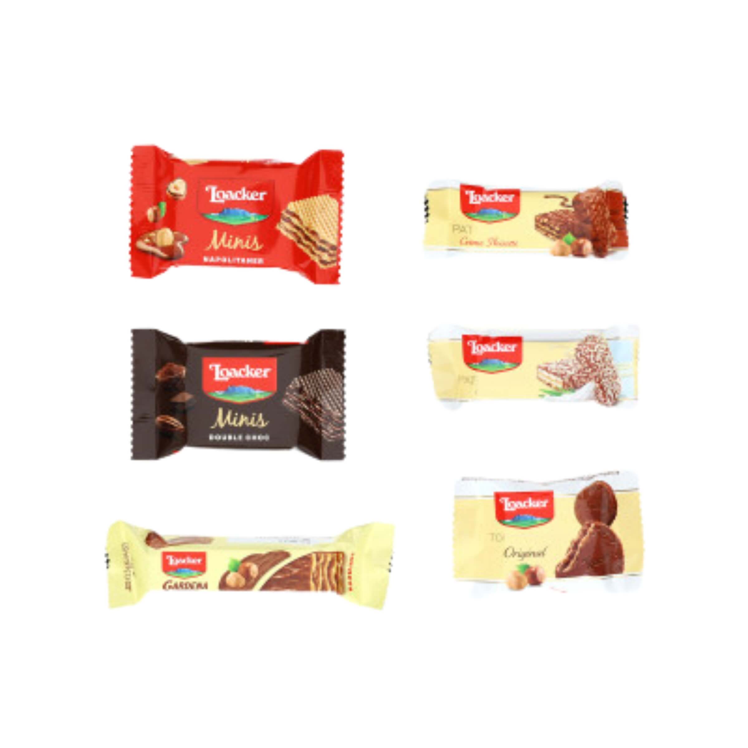 • Mix esclusivo di referenze Loacker: All’interno si trovano specialità assortite come Napolitaner, Double Choc, Gardena, Patisserie Coconut, Patisserie White e Tortina Original, offrendo un’esperienza di degustazione ampia e variegata.