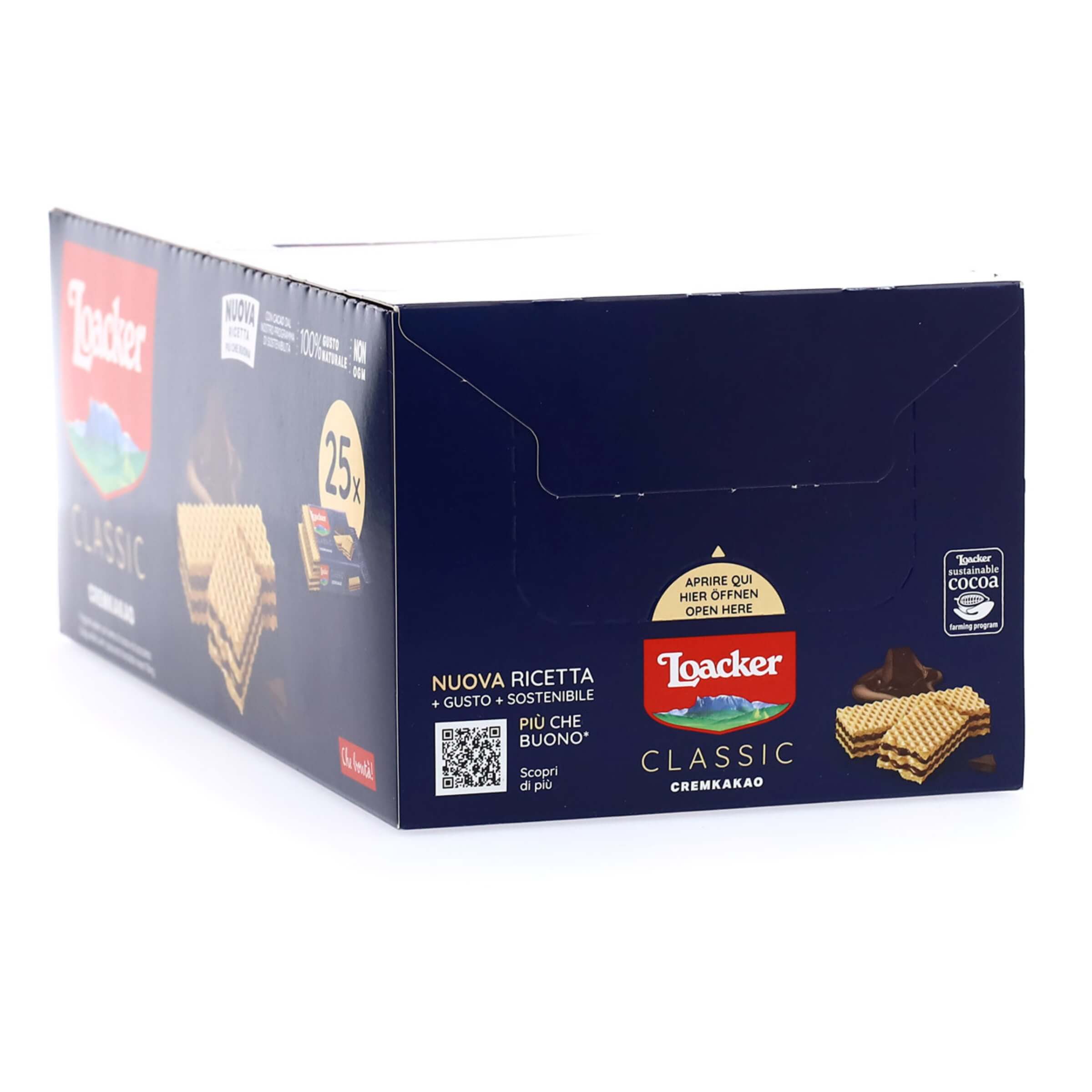 I Loacker Classic Cremkakao da 45 g sono il simbolo del piacere autentico firmato Loacker: wafer fragranti e leggeri che racchiudono un ricco cuore di crema al cacao e cioccolato, preparata secondo la tradizione altoatesina con ingredienti di altissima qualità. Con il loro gusto inconfondibile e la nuova ricetta ancora più intensa e sostenibile, questi wafer rappresentano lo snack perfetto per ogni momento della giornata, capace di soddisfare il desiderio di dolcezza senza rinunciare alla leggerezza.