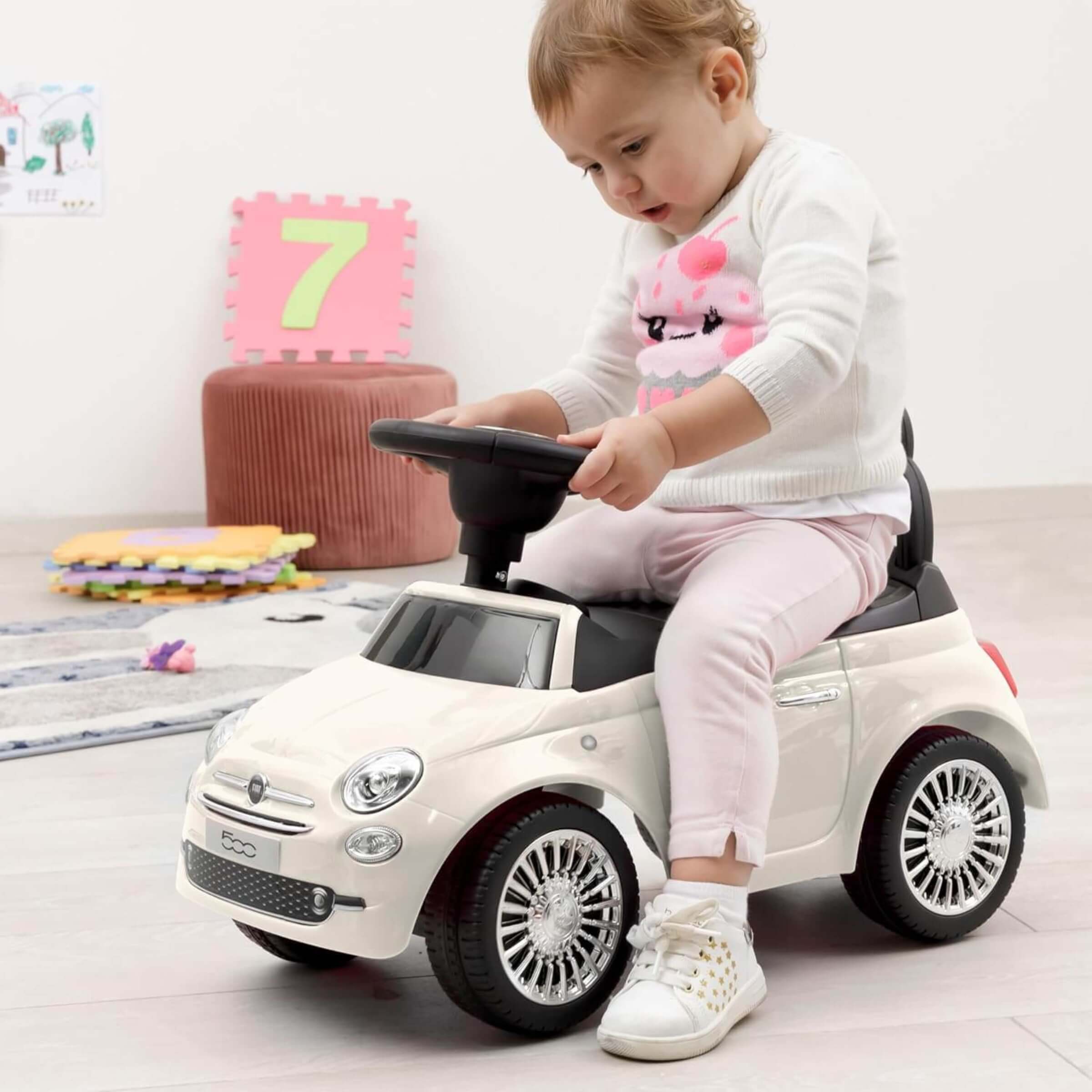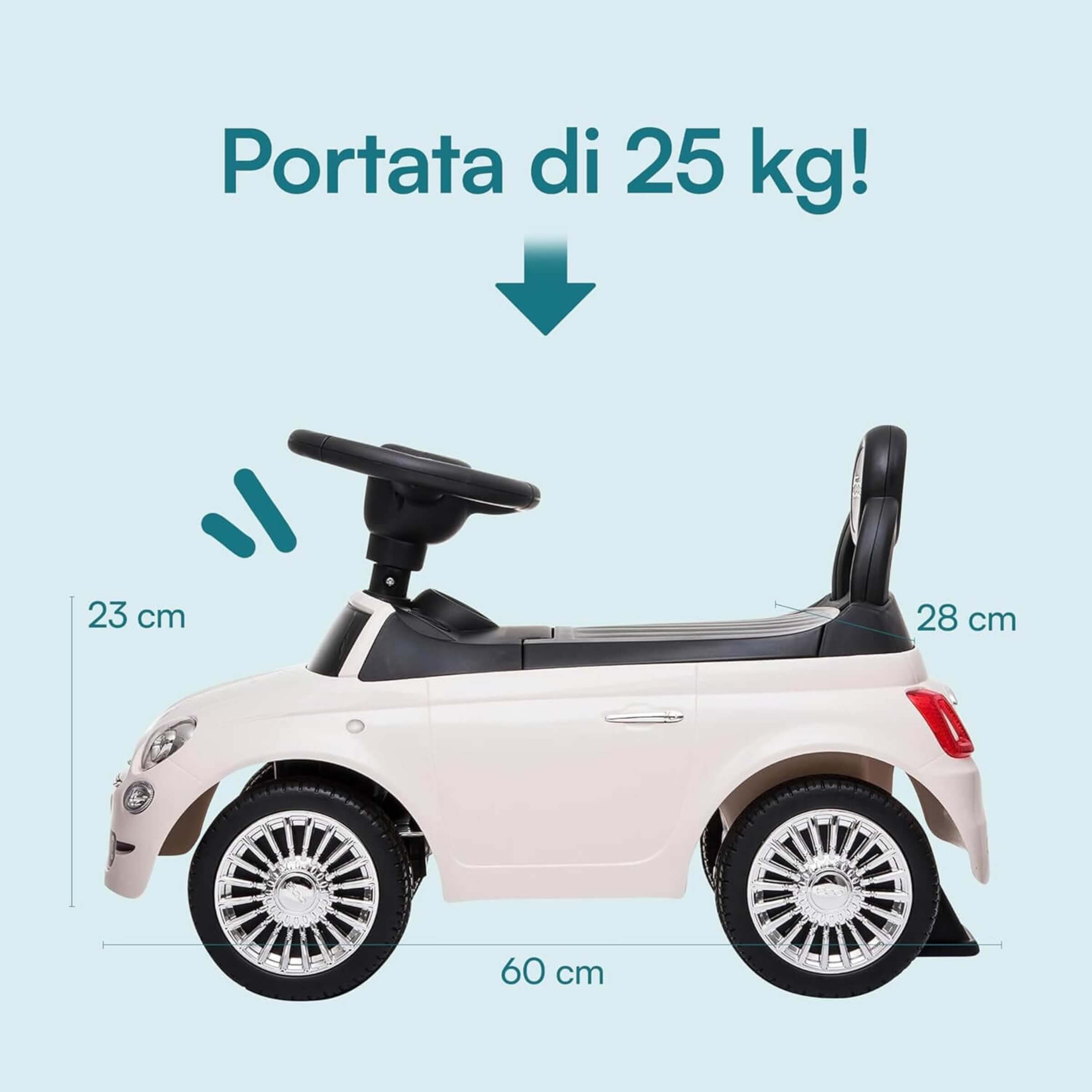 La Fiat 500 Auto a Spinta è un veicolo cavalcabile che unisce design autentico e funzionalità, offrendo ai più piccoli un modo divertente per sviluppare le loro capacità motorie. Riproducendo fedelmente l'estetica della vera Fiat 500, questo modello è ricco di dettagli che affascineranno i bambini e li accompagneranno nelle loro prime avventure su quattro ruote.• Design autentico: dotata di cerchi tipici Fiat, loghi ufficiali, contachilometri, schienale e volante, offre un'esperienza di gioco realistica e coinvolgente.• Sviluppo motorio: ideale per favorire la capacità di camminare nei bambini, aiutandoli a sviluppare equilibrio e coordinazione in totale sicurezza.• Volante con clacson funzionante: il volante è equipaggiato con un clacson che emette suoni realistici, aggiungendo divertimento e realismo al gioco.• Vano portaoggetti: sotto il sedile è presente un pratico vano dove il bambino può conservare i suoi giocattoli preferiti.• Sicurezza e comfort: realizzata senza batterie o pile, funziona a spinta ed è dotata di ruote ampie e testurizzate con sistema antiribaltamento. Il sedile e lo schienale in PP proteggono la schiena dei più piccoli.• Multifunzione: può essere utilizzata sia come cavalcabile che come supporto per imparare a camminare, offrendo versatilità nell'uso quotidiano.• Dimensioni ottimali: con misure di 60 cm lunghezza, 27,5 cm larghezza e 38 cm altezza, e un'altezza del sedile di 26 cm, è adatta a bambini dai 12 mesi in su, supportando un peso massimo di 25 kg.La Fiat 500 Auto a Spinta è il compagno ideale per accompagnare i bambini nelle loro prime esplorazioni, garantendo ore di divertimento e contribuendo al loro sviluppo motorio in modo sicuro e coinvolgente.