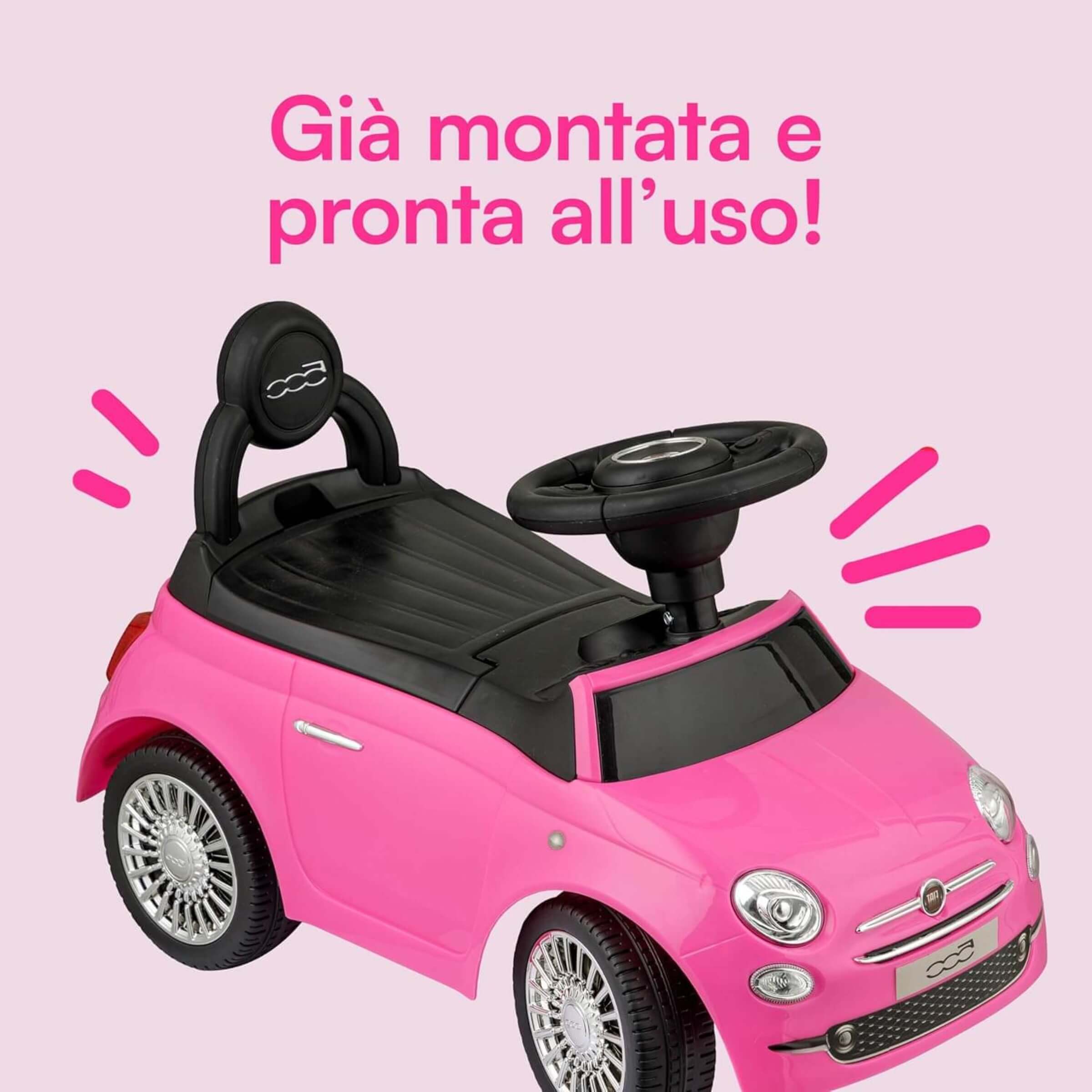 La Fiat 500 Auto a Spinta è un veicolo cavalcabile che unisce design autentico e funzionalità, offrendo ai più piccoli un modo divertente per sviluppare le loro capacità motorie. Riproducendo fedelmente l'estetica della vera Fiat 500, questo modello è ricco di dettagli che affascineranno i bambini e li accompagneranno nelle loro prime avventure su quattro ruote.• Design autentico: dotata di cerchi tipici Fiat, loghi ufficiali, contachilometri, schienale e volante, offre un'esperienza di gioco realistica e coinvolgente.• Sviluppo motorio: ideale per favorire la capacità di camminare nei bambini, aiutandoli a sviluppare equilibrio e coordinazione in totale sicurezza.• Volante con clacson funzionante: il volante è equipaggiato con un clacson che emette suoni realistici, aggiungendo divertimento e realismo al gioco.• Vano portaoggetti: sotto il sedile è presente un pratico vano dove il bambino può conservare i suoi giocattoli preferiti.• Sicurezza e comfort: realizzata senza batterie o pile, funziona a spinta ed è dotata di ruote ampie e testurizzate con sistema antiribaltamento. Il sedile e lo schienale in PP proteggono la schiena dei più piccoli.• Multifunzione: può essere utilizzata sia come cavalcabile che come supporto per imparare a camminare, offrendo versatilità nell'uso quotidiano.• Dimensioni ottimali: con misure di 60 cm lunghezza, 27,5 cm larghezza e 38 cm altezza, e un'altezza del sedile di 26 cm, è adatta a bambini dai 12 mesi in su, supportando un peso massimo di 25 kg.La Fiat 500 Auto a Spinta è il compagno ideale per accompagnare i bambini nelle loro prime esplorazioni, garantendo ore di divertimento e contribuendo al loro sviluppo motorio in modo sicuro e coinvolgente.