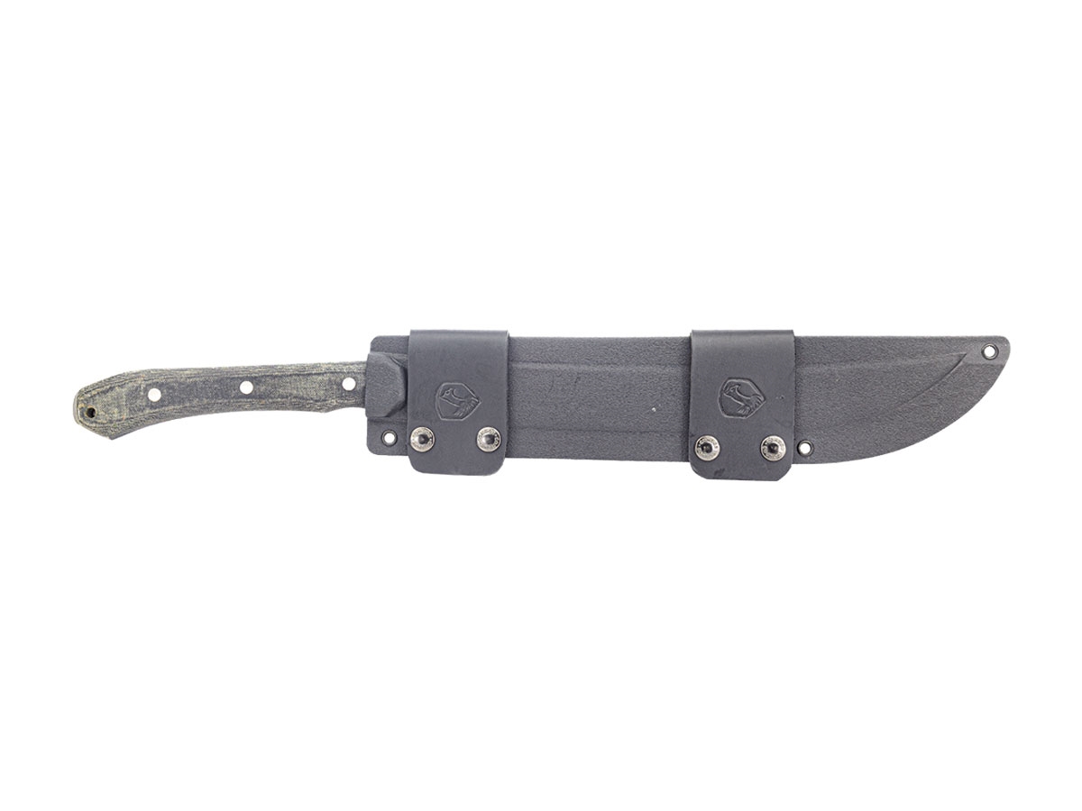 Questo machete K-Night simile a un falcione con un manico esteso è progettato per riempire un "Kniche" nel tuo equipaggiamento. Il manico consente opzioni di posizionamento della mano pressoché infinite e la lama è leggera e veloce con la capacità di allontanare la punta dal corpo con una presa sul tallone del manico. Quando sono richiesti precisione e controllo per spingere o lavorare a distanza ravvicinata, il design consente una presa strozzata o un uso a due mani. Facile da trasportare e di rapido accesso, questo strumento diventa un compagno affidabile e comodo per le tue esigenze quotidiane.