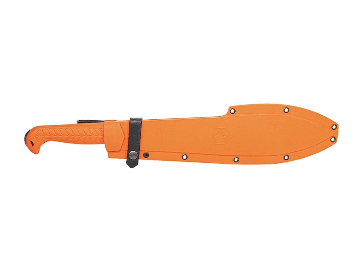 Il Terrachete è un machete per tutti. Con un manico ergonomico in termoplastica ben progettato, questo strumento da boscaiolo può gestire qualsiasi ambiente. Come il nostro famoso coltello Terrasaur, è progettato per essere uno strumento da taglio su cui puoi contare. Il bordo ha una molatura più dura vicino alla punta dove possono verificarsi colpi con le rocce, e si fonde con una molatura diversa vicino al manico, per un carving più controllato. Il Machete ha un pomello esteso e viene fornito con una nuova guaina in termoplastica. Il colore arancione di questo particolare machete si presta alla ricerca e al salvataggio e ad altre situazioni in cui un machete necessita di un colore utile che possa essere trovato rapidamente.