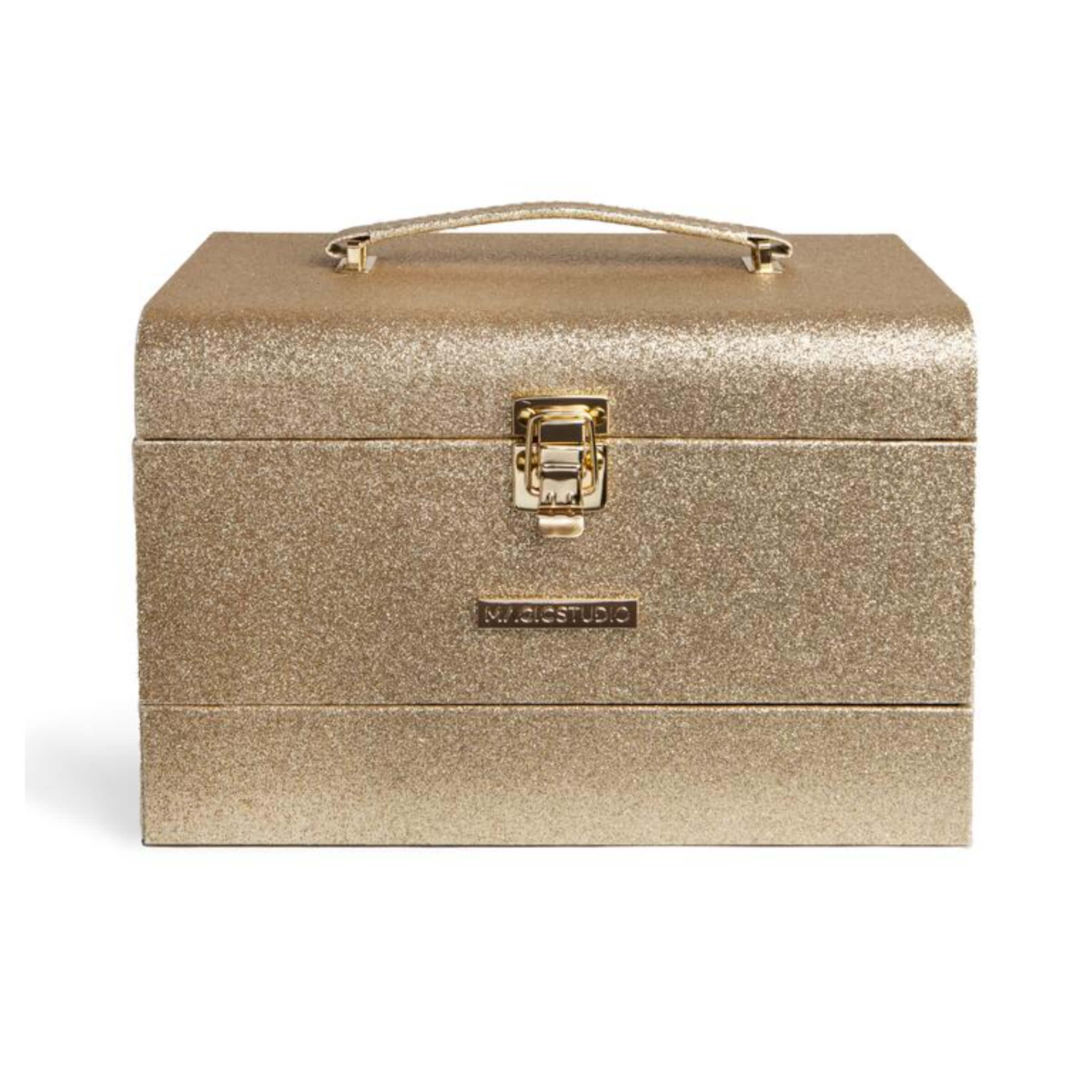 Il set trucco Magic Studio Diamond Sparkle On The Go è la scelta perfetta per chi desidera avere un beauty case completo sempre a portata di mano. Grazie alla sua valigetta a tre piani, compatta ed elegante, offre una gamma di prodotti essenziali per realizzare make-up impeccabili, sia per il giorno che per la sera. Perfetto per le appassionate di bellezza che vogliono sperimentare con colori e texture diverse, questo set è ideale anche come regalo per chi ama il mondo del make-up.• 24 ombretti: una vasta selezione di tonalità luminose e sofisticate, con finish opachi, satinati e shimmer, ideali per creare look delicati o intensi. Le texture morbide e facili da sfumare assicurano un risultato professionale con pochi gesti.• 2 fard: perfetti per donare un aspetto sano e radioso al viso. Le tonalità versatili si adattano a ogni incarnato, scolpendo e illuminando i tratti con un tocco naturale.• 4 smalti perlescenti e glitterati: una combinazione di colori brillanti e sofisticati per una manicure sempre curata e in linea con le ultime tendenze. La formula a lunga durata garantisce un finish impeccabile e resistente nel tempo.• 1 lima per unghie: accessorio indispensabile per modellare e rifinire le unghie con precisione, assicurando una manicure perfetta in ogni occasione.• 3 rossetti: texture cremosa e confortevole per un colore intenso e una copertura uniforme. Le tonalità selezionate esaltano le labbra, donando un look raffinato e curato.• 1 eyeliner: ideale per definire lo sguardo con precisione, creando linee sottili ed eleganti o più marcate per un effetto intenso e magnetico.• 1 matita labbra: contorno labbra preciso e definito per valorizzare la forma naturale e migliorare la tenuta del rossetto. La texture morbida scorre facilmente senza sbavature.• 2 lucidalabbra: finish brillante e idratante per labbra voluminose e luminose. Perfetti da applicare da soli o sopra il rossetto per un effetto glossy irresistibile.La valigetta Diamond Sparkle On The Go è progettata per mantenere tutto in ordine e facilmente accessibile, diventando il compagno ideale per viaggi, eventi o semplicemente per avere sempre i tuoi prodotti preferiti a disposizione. La chiusura sicura e la struttura resistente proteggono il contenuto, rendendolo pratico e funzionale.Misure del prodotto: 17,7 x 25,7 x 17 cm