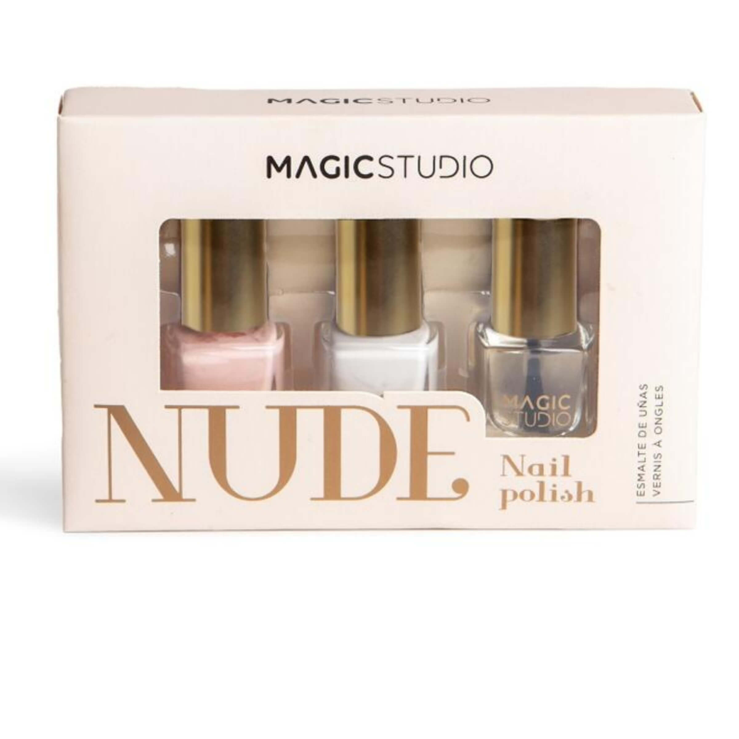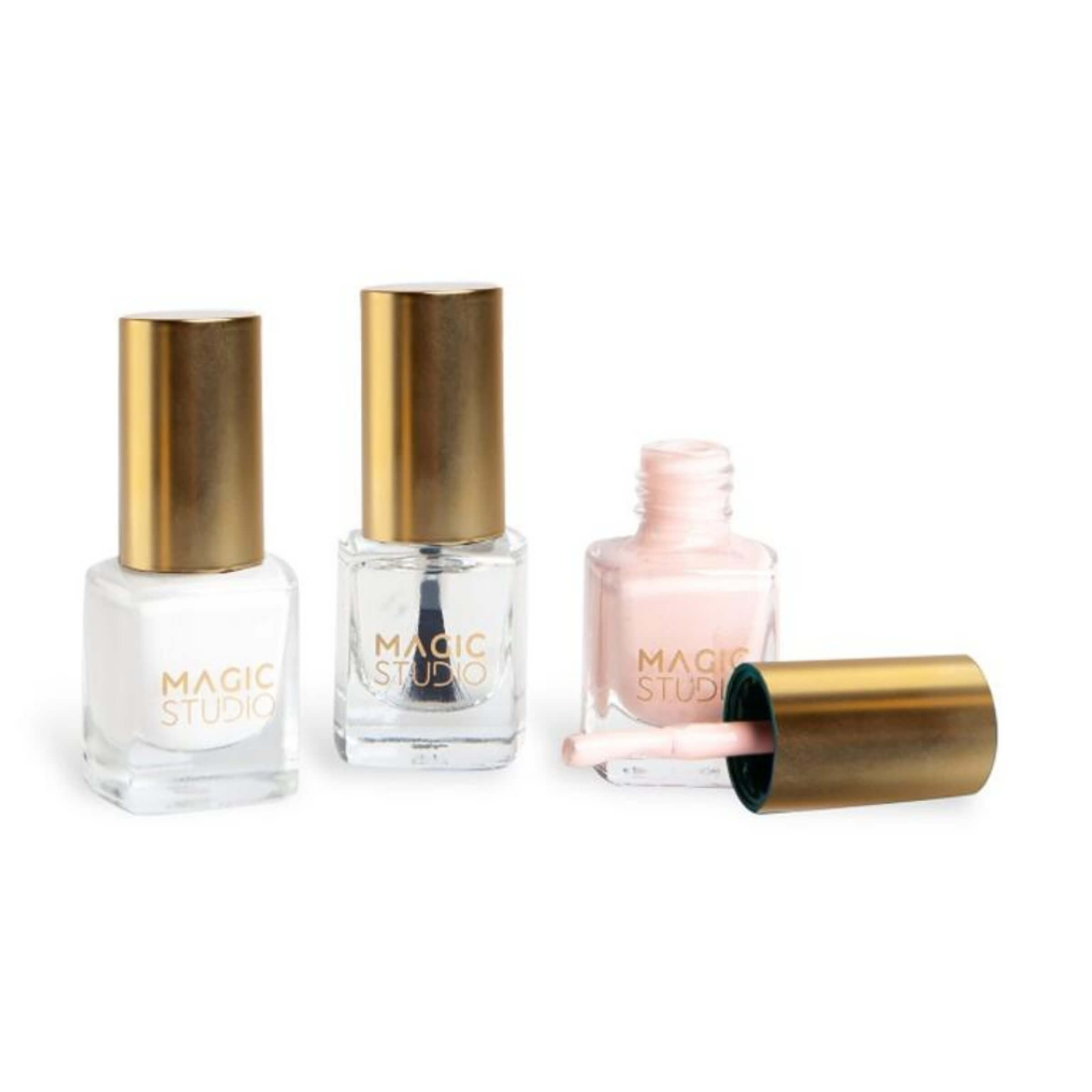 Il set Magic Studio Nude è una collezione elegante di tre smalti pensati per valorizzare le mani con tonalità raffinate e delicate. I colori nude sono ideali per chi desidera una manicure naturale e sofisticata, perfetta in ogni occasione, dal lavoro alle serate speciali. Le nuance incluse nel set si adattano a diversi stili e carnagioni, permettendo di ottenere un look curato, pulito e senza tempo. Ogni smalto è formulato per garantire un’applicazione semplice e uniforme, con una finitura brillante e una buona resistenza. Il pennellino consente di stendere il colore in modo preciso, rendendo l’applicazione adatta sia agli appassionati di nail art sia a chi preferisce un look minimal.• Tonalità raffinate: Il set include tre colori nude, studiati per offrire un look elegante e naturale, adatti a ogni occasione.• Effetto French manicure: Le nuance neutre sono perfette per creare la classica French manicure o per essere applicate da sole per un look discreto e luminoso.• Applicazione semplice: Il pennellino garantisce una stesura uniforme del colore, riducendo le striature e rendendo l’uso intuitivo anche per i meno esperti.• Finitura elegante: Una volta applicati, gli smalti donano brillantezza e uniformità all’unghia, con un risultato che appare sempre curato e raffinato.• Formula resistente: La composizione è pensata per ridurre le sbeccature, mantenendo la manicure ordinata più a lungo.• Versatilità d’uso: Ideale per look quotidiani sobri e professionali, ma anche come base per nail art creative o abbinamenti più audaci.• Confezione elegante: Il packaging raffinato e compatto lo rende perfetto anche come idea regalo per chi ama prendersi cura delle proprie mani con stile.Questo set di smalti Magic Studio Nude è pensato per chi cerca un risultato discreto ma curato, trasformando la manicure in un dettaglio di eleganza che completa il look con naturalezza. Con queste tonalità neutre, le unghie diventano un accessorio raffinato, capace di valorizzare qualsiasi outfit.