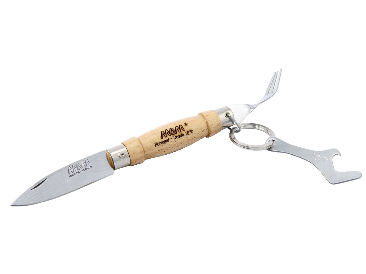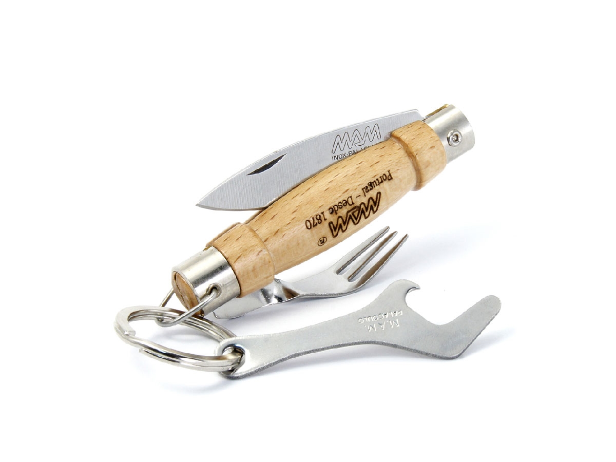 Nel manico sono inclusi una forchetta pieghevole ed un apribottiglia.