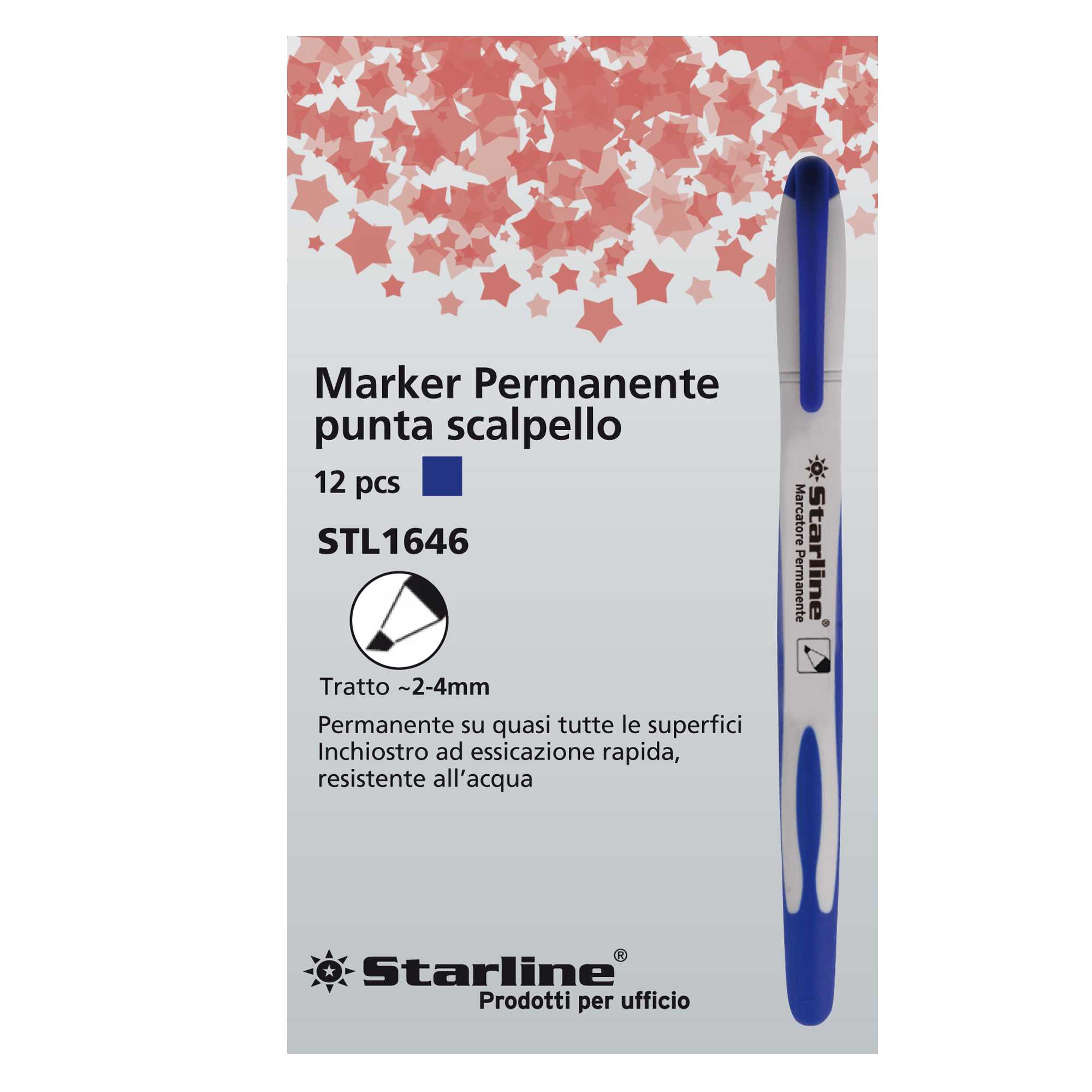 Marcatore permanente punta scalpello 2-4mm blu Starline Composto da 12