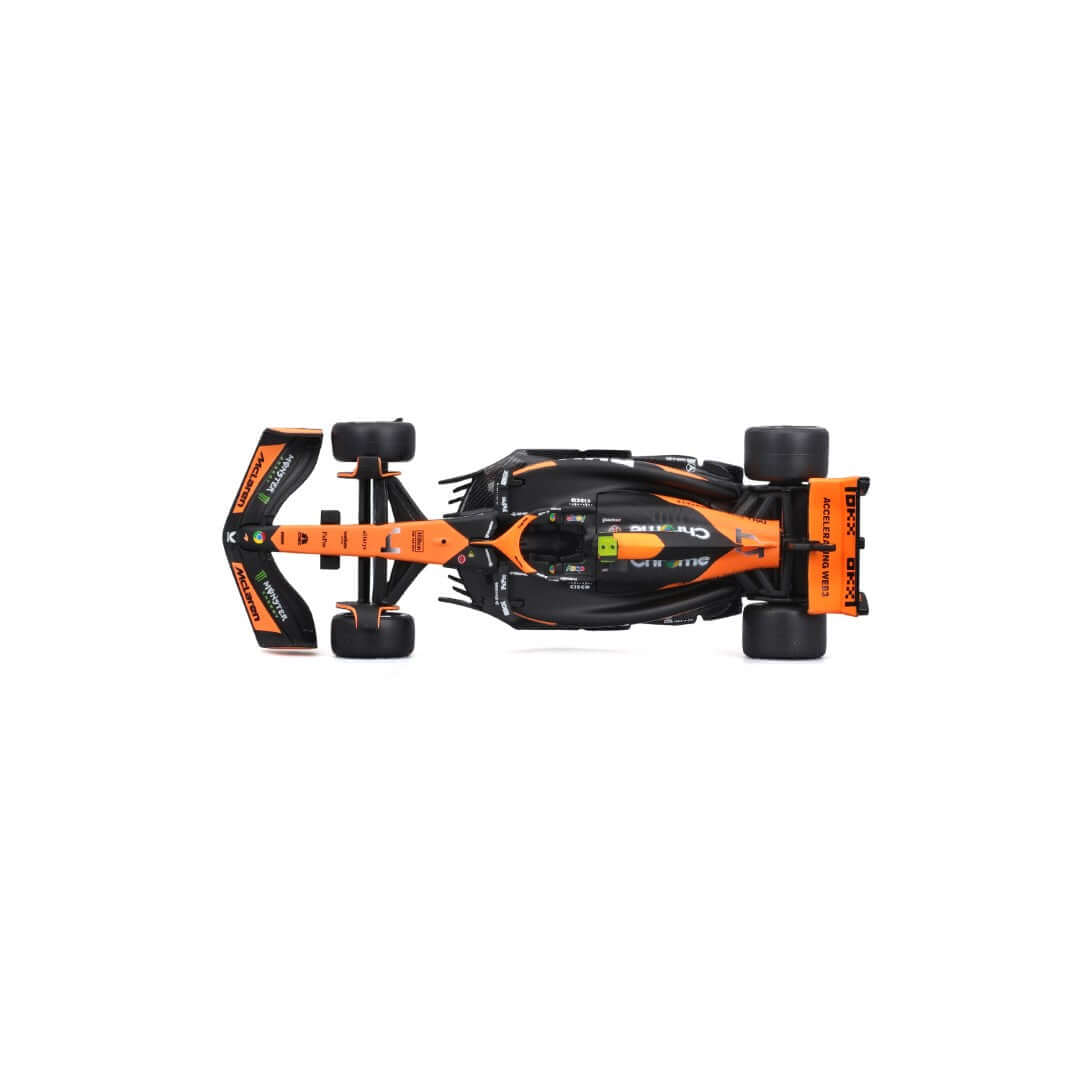 La McLaren F1 MCL38 in scala 1:43 proposta da Bburago rappresenta uno dei modi più immediati e coinvolgenti per avvicinarsi alla dimensione estetica e tecnica della monoposto guidata da Lando Norris nella stagione 2024. Il modellino cattura l’essenza del design aggressivo della scuderia, unendo colori iconici, forme aerodinamiche studiate nei minimi dettagli e una presenza visiva che richiama la potenza e la precisione delle vetture di Formula 1 moderne. L’insieme di linee affilate, superfici pulite e scelte cromatiche distintive offre una sensazione di movimento anche quando il modello è statico, trasformando un oggetto da collezione in un punto di contatto con l’emozione e la tensione delle gare internazionali.• Scala accurata: la riproduzione in scala 1:43 permette di valorizzare proporzioni e silhouette della vettura, mantenendo fedeli le linee principali e gli elementi distintivi della monoposto originale.• Materiali combinati: la struttura in metallo pressofuso unita a parti in plastica sagomate con precisione garantisce robustezza e una resa visiva definita, esaltando i contorni, le superfici e i dettagli tecnici del modello.• Livrea riconoscibile: la colorazione arancione e nera della McLaren, iconica e immediatamente identificabile, è riprodotta con cura, con loghi, grafiche e contrasti applicati in modo pulito e uniforme.• Dettagli aerodinamici: il muso, gli alettoni, i profili laterali e le prese d’aria sono riprodotti con attenzione, restituendo la complessità delle soluzioni tecniche adottate nella vettura reale e permettendo di osservare da vicino la logica progettuale della scuderia.• Confezione espositiva: la scatola con finestra protegge il modellino e allo stesso tempo ne valorizza la presenza, rendendolo adatto al collezionismo, alla decorazione di ambienti o alla semplice esposizione come oggetto che richiama la cultura delle corse.Questo modellino della McLaren F1 MCL38 invita a riscoprire il fascino della competizione attraverso una rappresentazione compatta e dettagliata, capace di evocare sensazioni di velocità, precisione e passione sportiva. È un oggetto che trova naturale collocazione sia nelle collezioni dedicate ai motori sia in spazi personali dove ogni dettaglio racconta qualcosa della propria passione per la Formula 1 e per l’evoluzione delle sue monoposto.