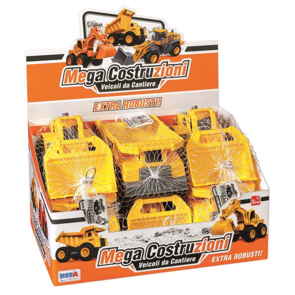 Quando il gioco si fa grande, servono mezzi robusti e pronti all'azione: i veicoli da cantiere Mega Costruzioni a ruota libera sono pensati per i piccoli costruttori che amano spingere al massimo la fantasia. Ispirati ai mezzi reali dei cantieri edili, questi modellini extra robusti uniscono dimensioni generose a una struttura solida e resistente, ideali per giochi dinamici all'interno e all'esterno. Ogni veicolo è progettato per stimolare l'immaginazione attraverso il gioco di ruolo e il movimento fisico, con ruote ampie e fluide che scorrono facilmente su qualsiasi superficie.• Due modelli assortiti: La linea comprende una ruspa caricatrice e un camion ribaltabile, entrambi con dettagli realistici che richiamano le vere macchine operative da cantiere.• Movimento a ruota libera: Le ruote non sono vincolate da meccanismi a molla o frizione, garantendo un movimento fluido, immediato e adatto a superfici diverse, dalla casa al cortile.• Design robusto: I materiali plastici di alta qualità e la costruzione massiccia rendono questi veicoli resistenti agli urti e all'uso quotidiano, perfetti per i bambini più energici.• Formato extra large: Con una lunghezza di ben 18 centimetri, questi mezzi offrono una presenza scenica importante e sono facili da impugnare, spingere e trasportare.• Espositore da 8 pezzi: Il pratico display da banco contiene 8 veicoli assortiti, ideale per l'esposizione in negozi di giocattoli, cartolerie o punti vendita stagionali.• Conformità garantita: Prodotto conforme alle normative europee in materia di sicurezza giocattoli, testato per garantire l’assenza di sostanze nocive, come richiesto dalle direttive EN71 e REACH.I veicoli Mega Costruzioni a ruota libera non sono semplici giocattoli, ma strumenti per sviluppare abilità motorie, creatività e autonomia. Il loro formato maxi, unito alla semplicità di utilizzo e all'estetica accattivante, li rende un elemento centrale nel gioco quotidiano dei bambini, trasformando ogni angolo in un vero cantiere in miniatura.