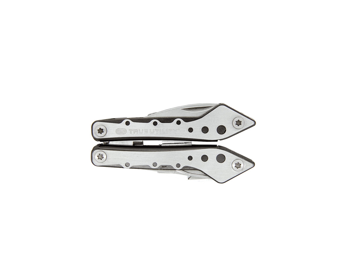 -  Pinza  -  Coltello  -  Tagliafili  -  Sega  -  Forbici  - 2 Cacciaviti  piatti  -  Cacciavite Philips-  Limetta-  Apribottiglia